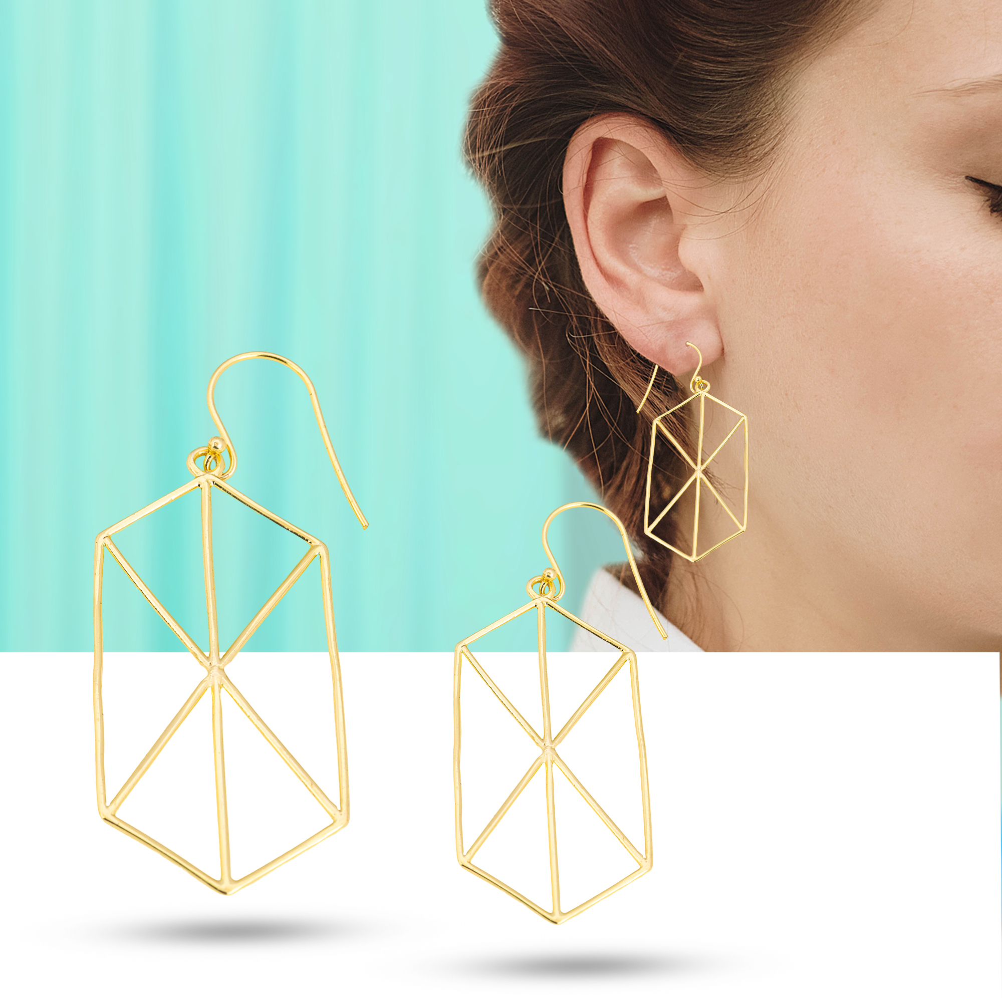 Add a graceful flair to your style with these intricately crafted Geometric Filigree Dangle Earrings from Meadows. Made from premium 925 sterling silver and finished in radiant yellow gold plating, these earrings feature a striking geometric shape enhanced with delicate filigree detailing ? a perfect mix of sophistication and contemporary artistry.