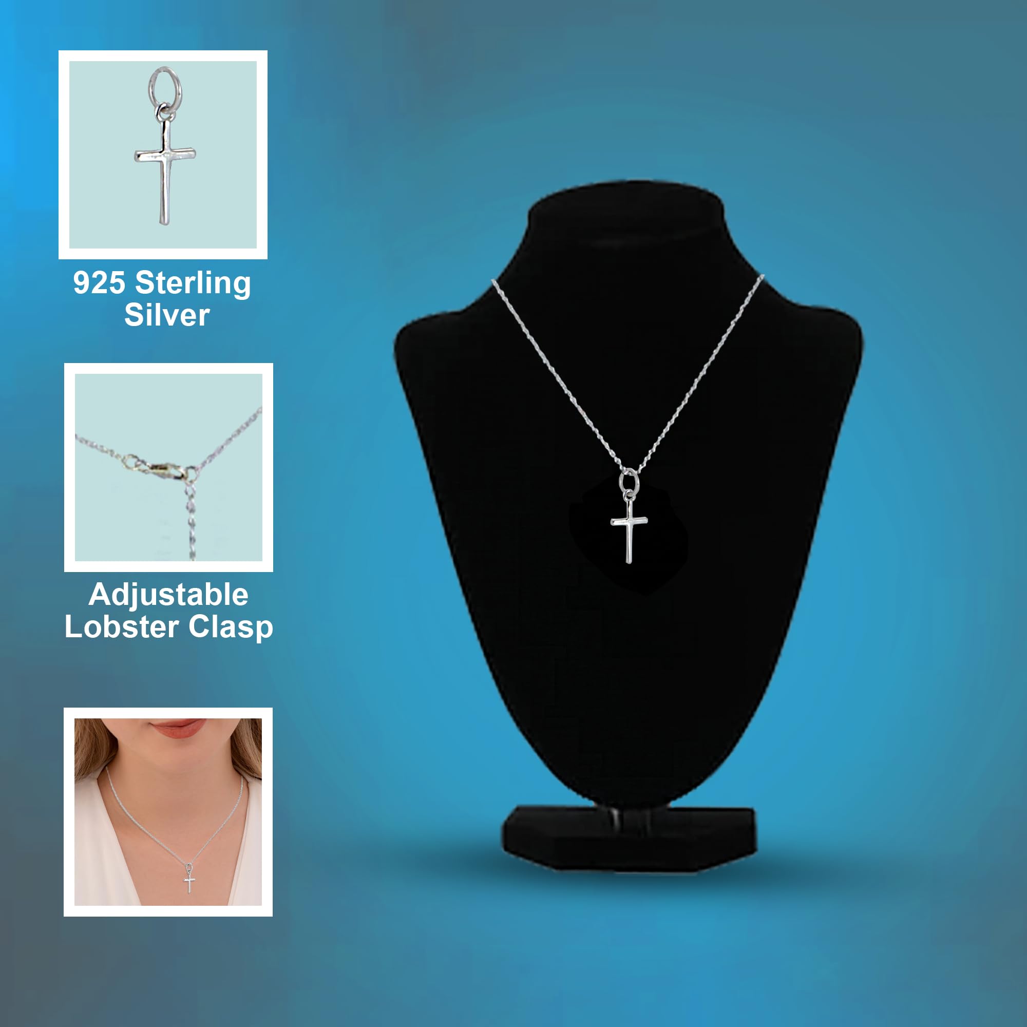 925 Sterling Silver Cross Necklace Pendants Plain Design Gifts for Her, Wife, Sister, Mom, Girlfriend, Easter