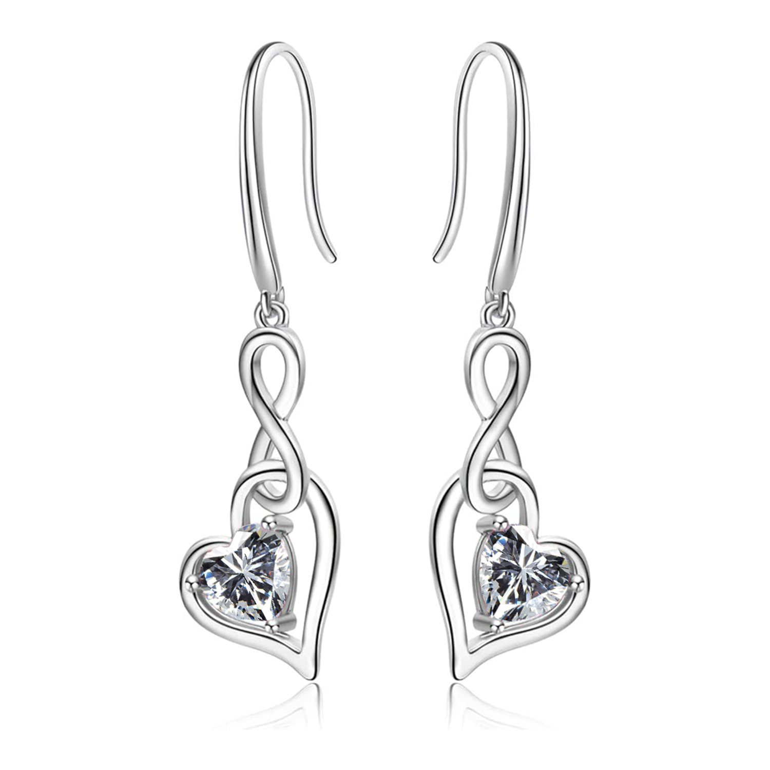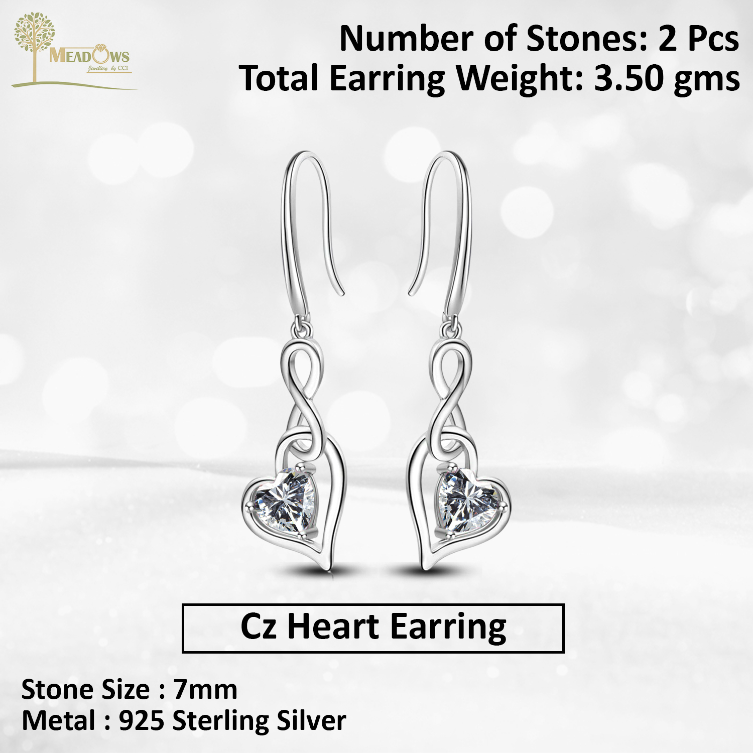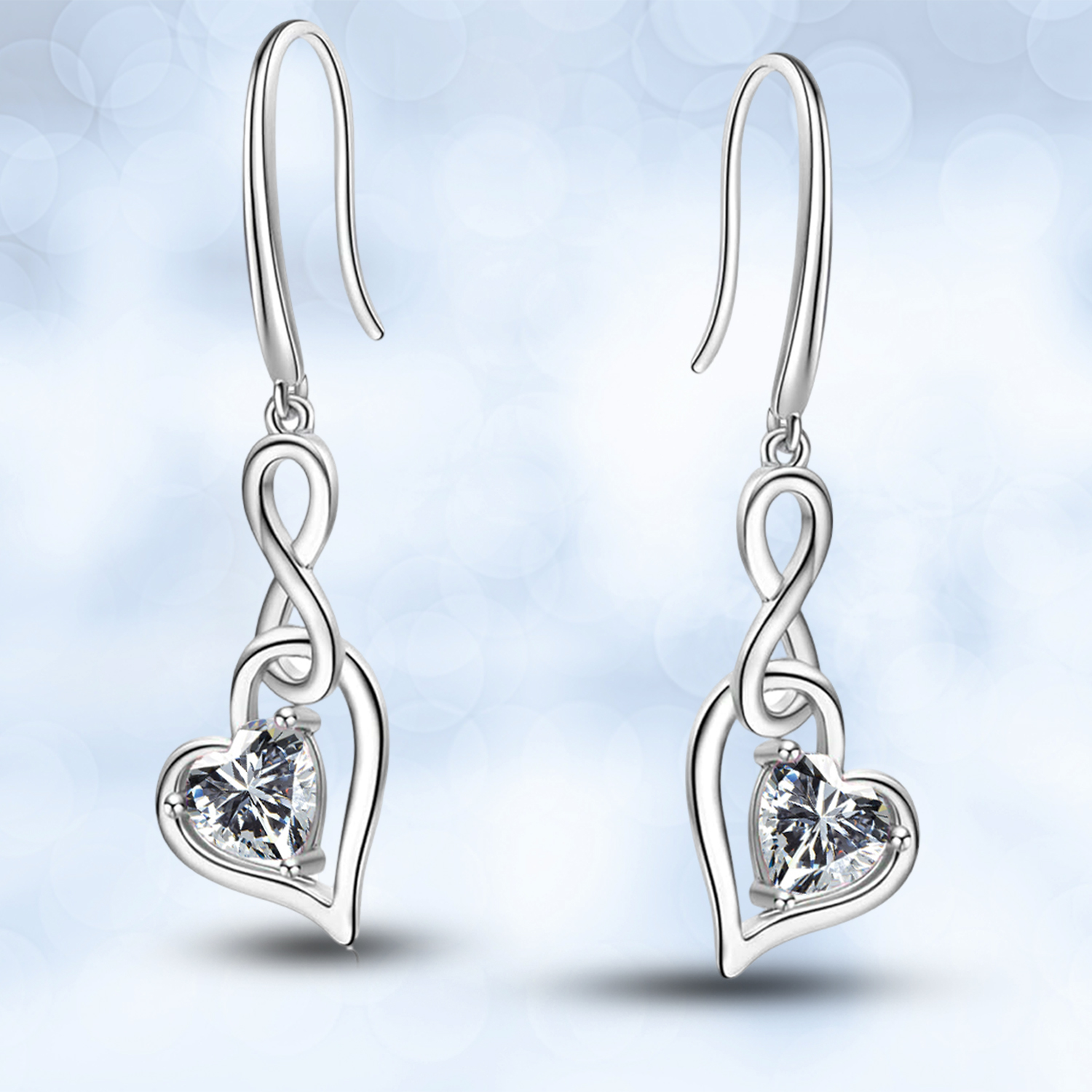 Add a touch of sparkle and meaning to your jewellery collection with our 925 Sterling Silver Infinity Heart Drop Earrings. These beautifully crafted earrings combine the graceful curve of the infinity symbol with a delicate heart frame, embracing a radiant heart-cut crystal.