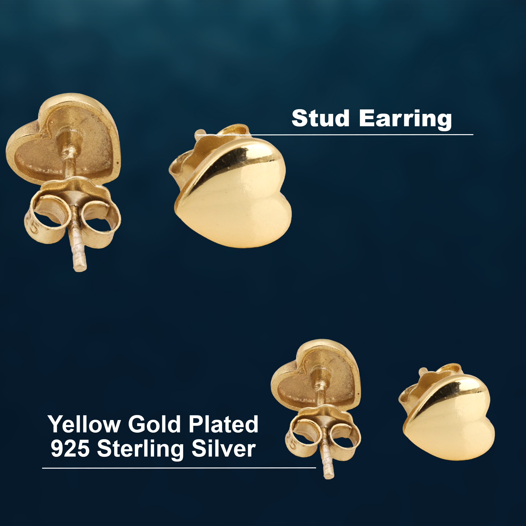 Meadows 925 Sterling Silver Yellow Gold Heart Stud Earrings ? A Symbol of Love & Elegance