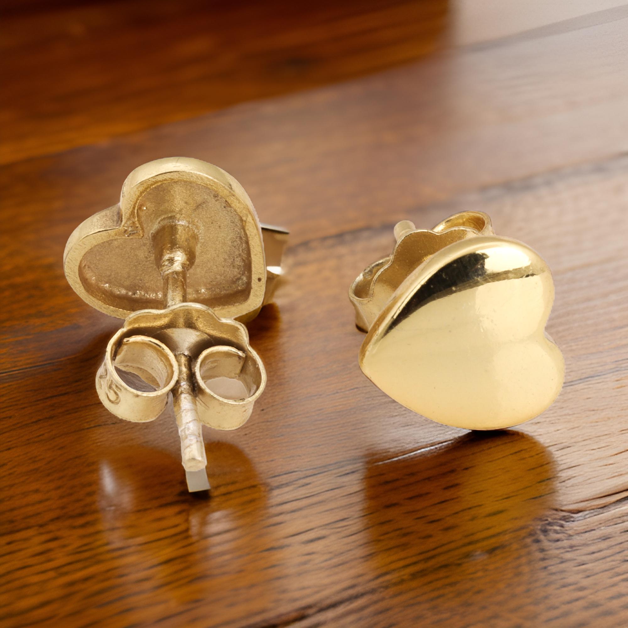 Celebrate love and elegance with these charming Heart Stud Earrings from Meadows. Meticulously crafted in 925 sterling silver and finished in luxurious yellow gold plating, these dainty heart-shaped studs are a timeless accessory that adds a subtle sparkle to any outfit.