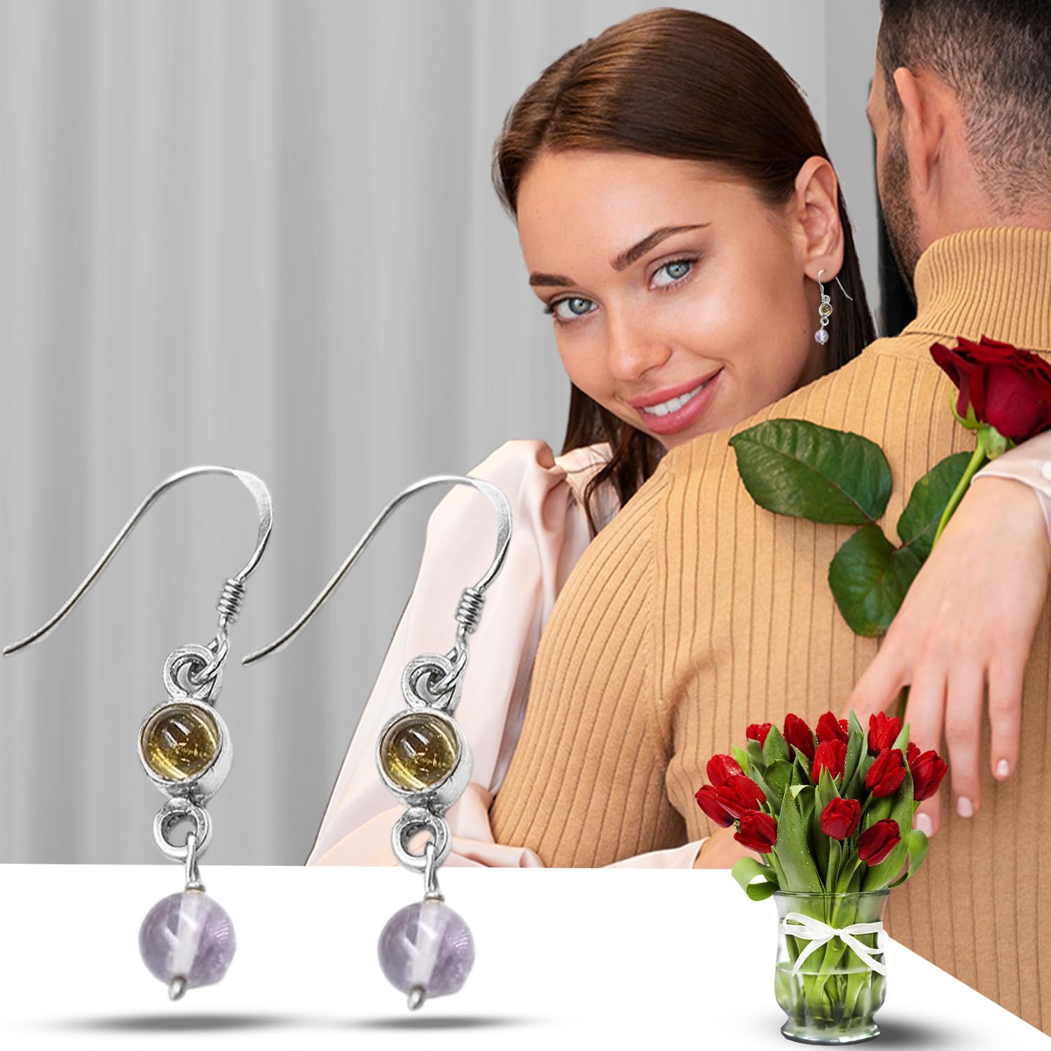Amethyst & Citrine Earring, Healing Crystal Earring, 925 Sterling Silver Earrings