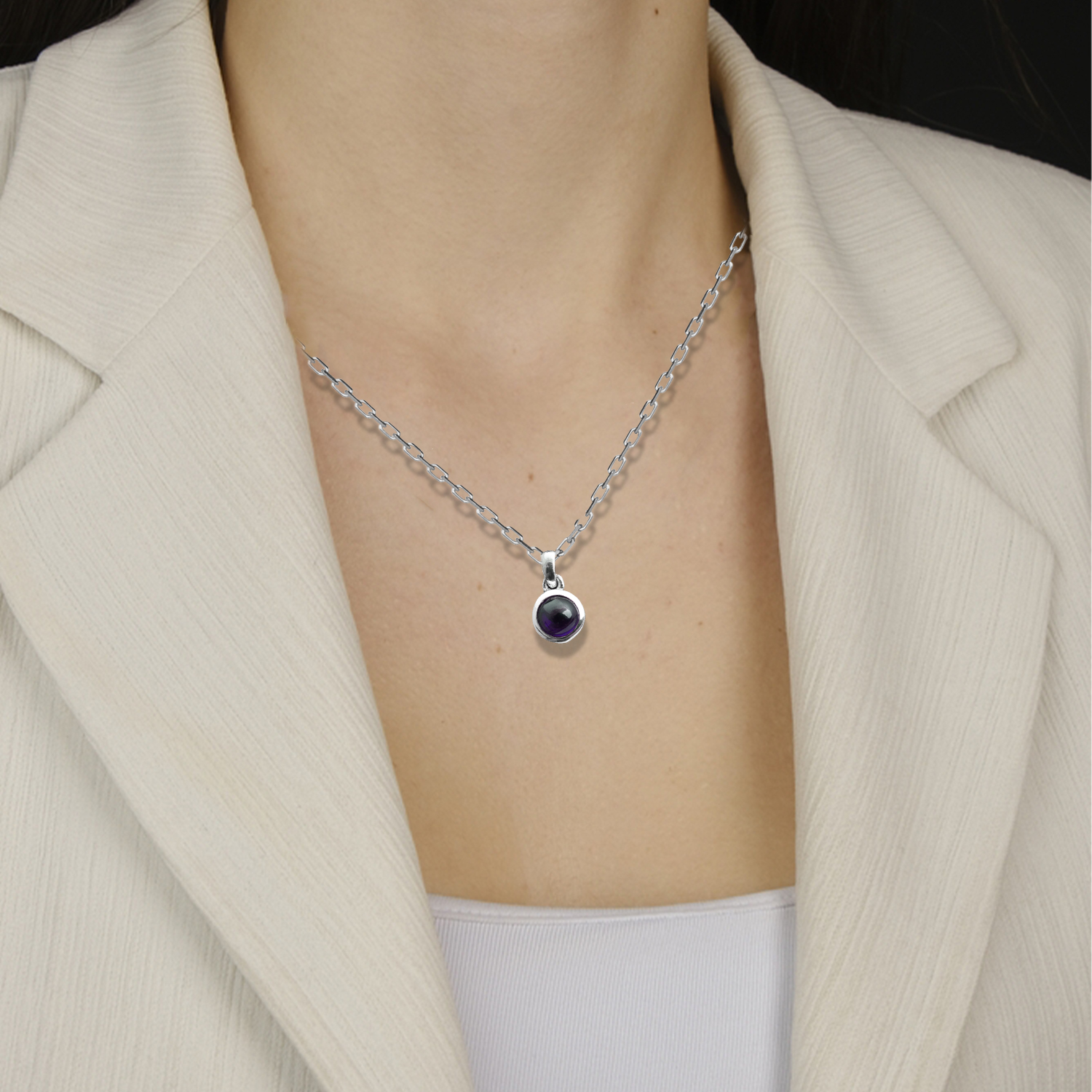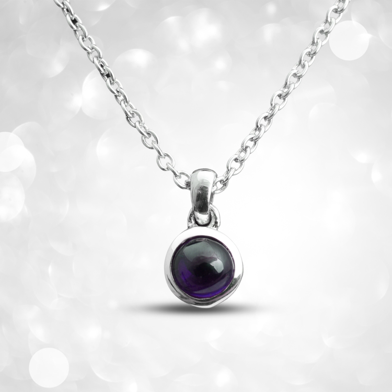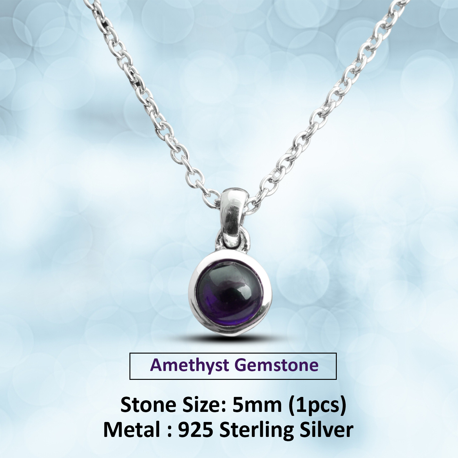 This beautiful Amethyst Pendant showcases a rich purple gemstone set in sterling silver, known for its calming energy and spiritual protection. Its vibrant color and elegant design make it a perfect piece for everyday elegance or special occasions.