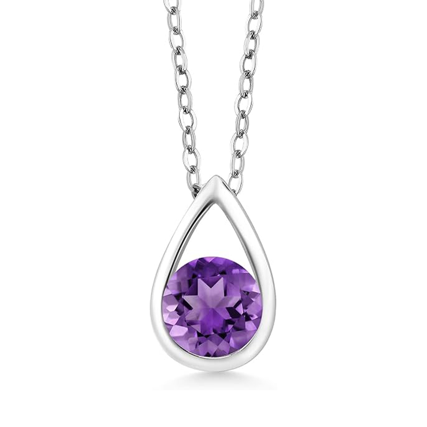 This stunning Amethyst Pendant showcases a vibrant purple gemstone set in sterling silver, known for its calming and healing properties. Its rich color and elegant design make it a perfect addition to any jewelry collection, ideal for both everyday wear and special occasions.