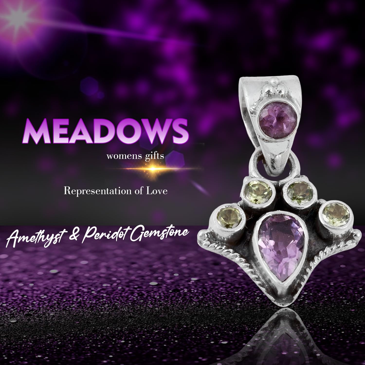 Amethyst & Peridot Pendant Pure 925 Sterling Silver Handmade Statement Pendant mothers day gifts
