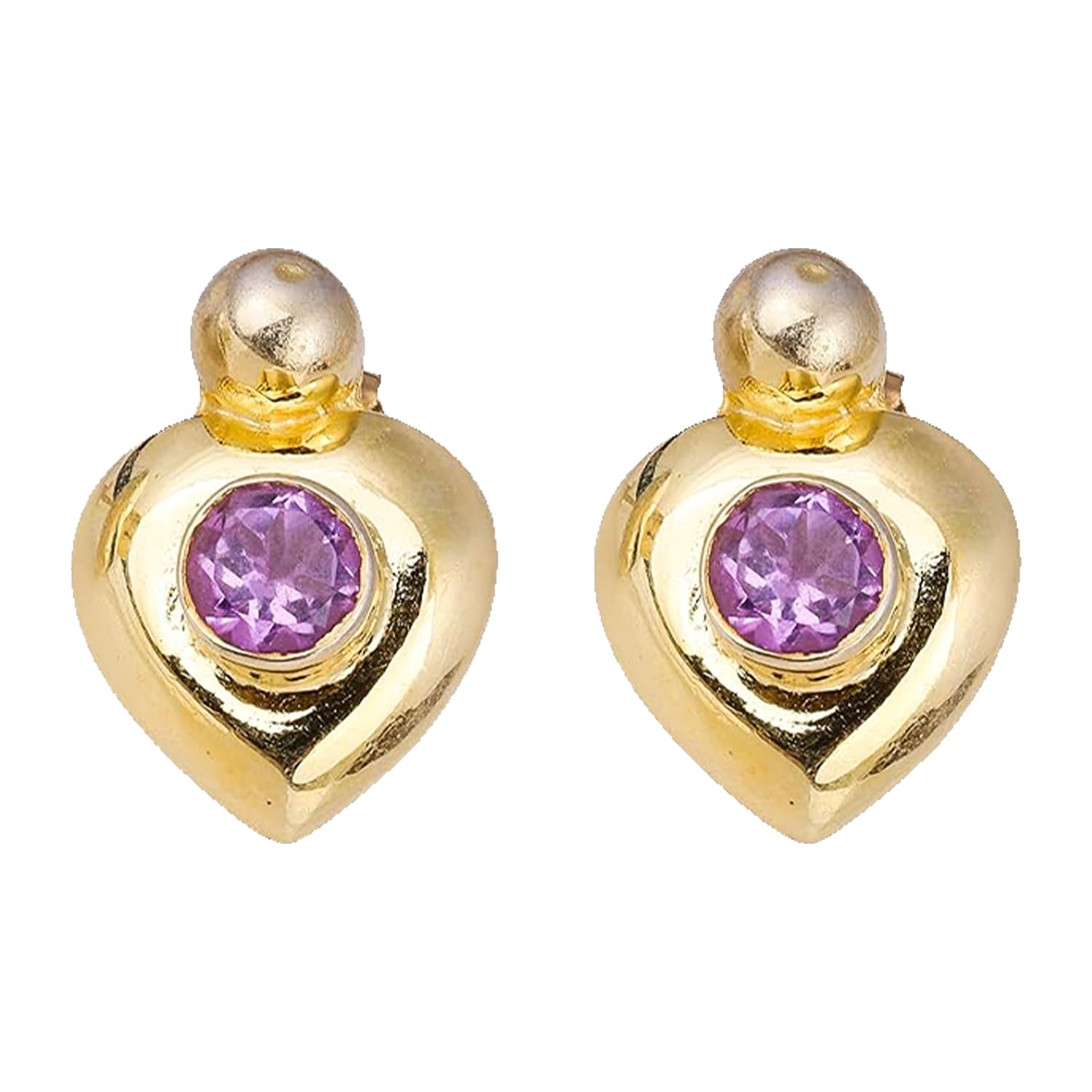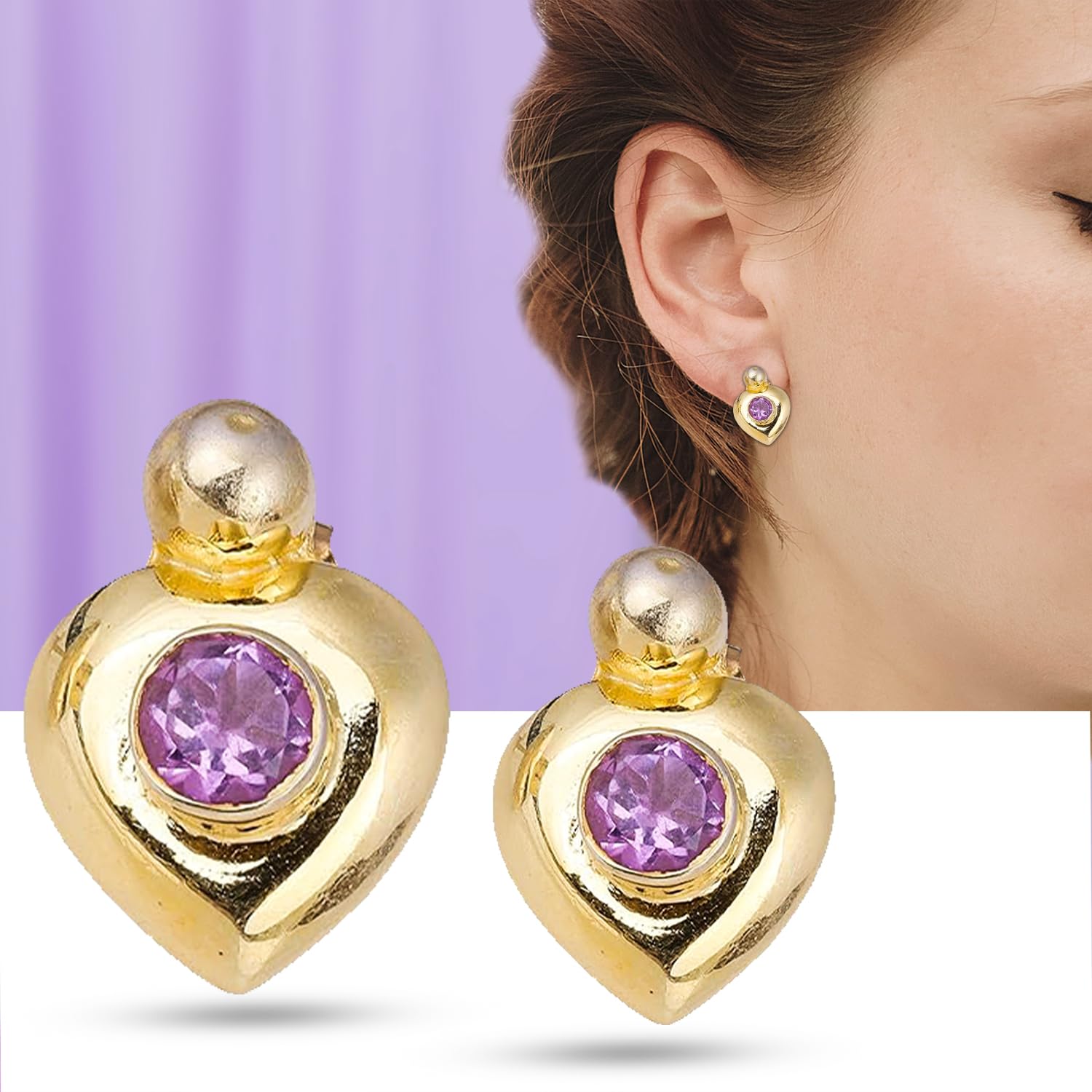 Amethyst Stud Earring, Gemstone Earring, Yellow Gold Plated 925 Sterling Silver Earring mothers day gifts