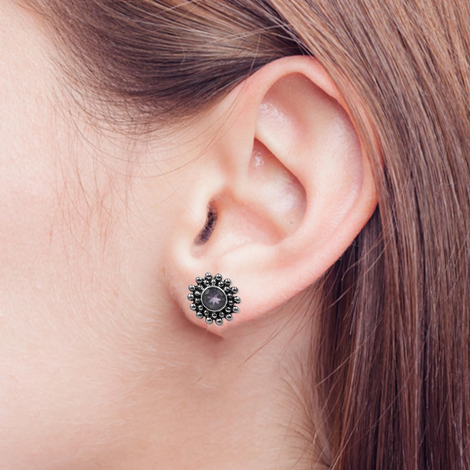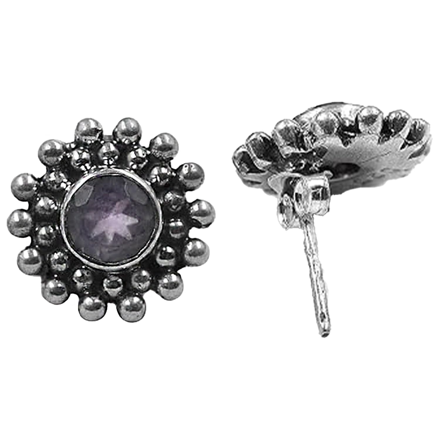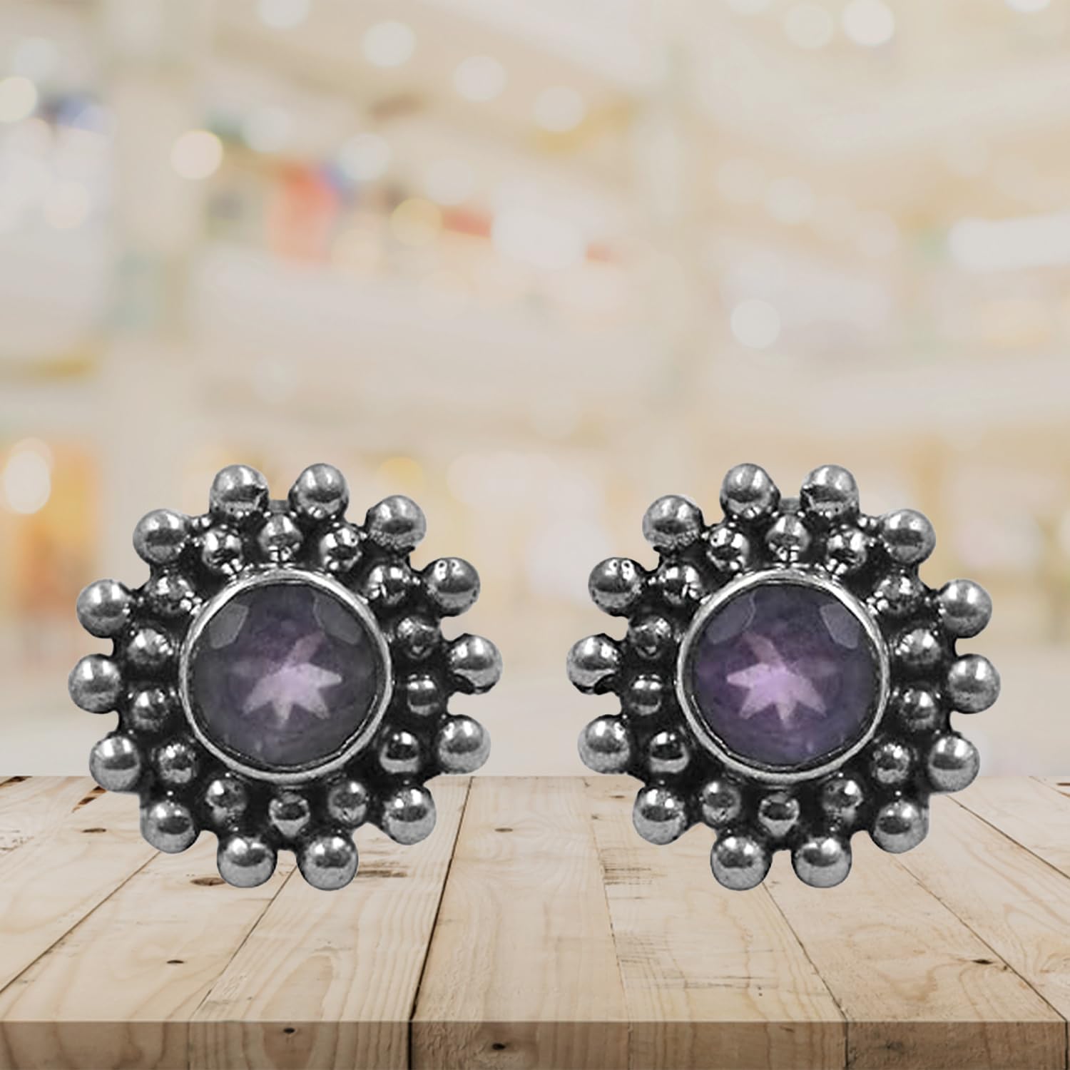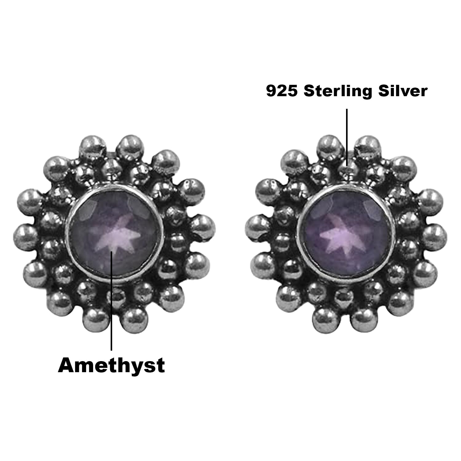 Amethyst Stud Earring, Healing Crystal Earring, 925 Sterling Silver Earring, Handmade Earring