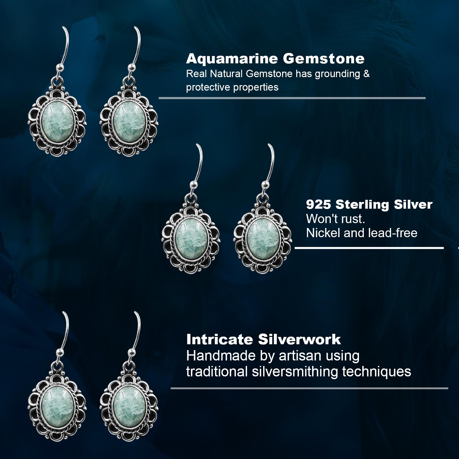 Aquamarine Gemstone Earring, Dangle Earring For Women, Healing Crystal Earring, 925 Sterling Silver Earring