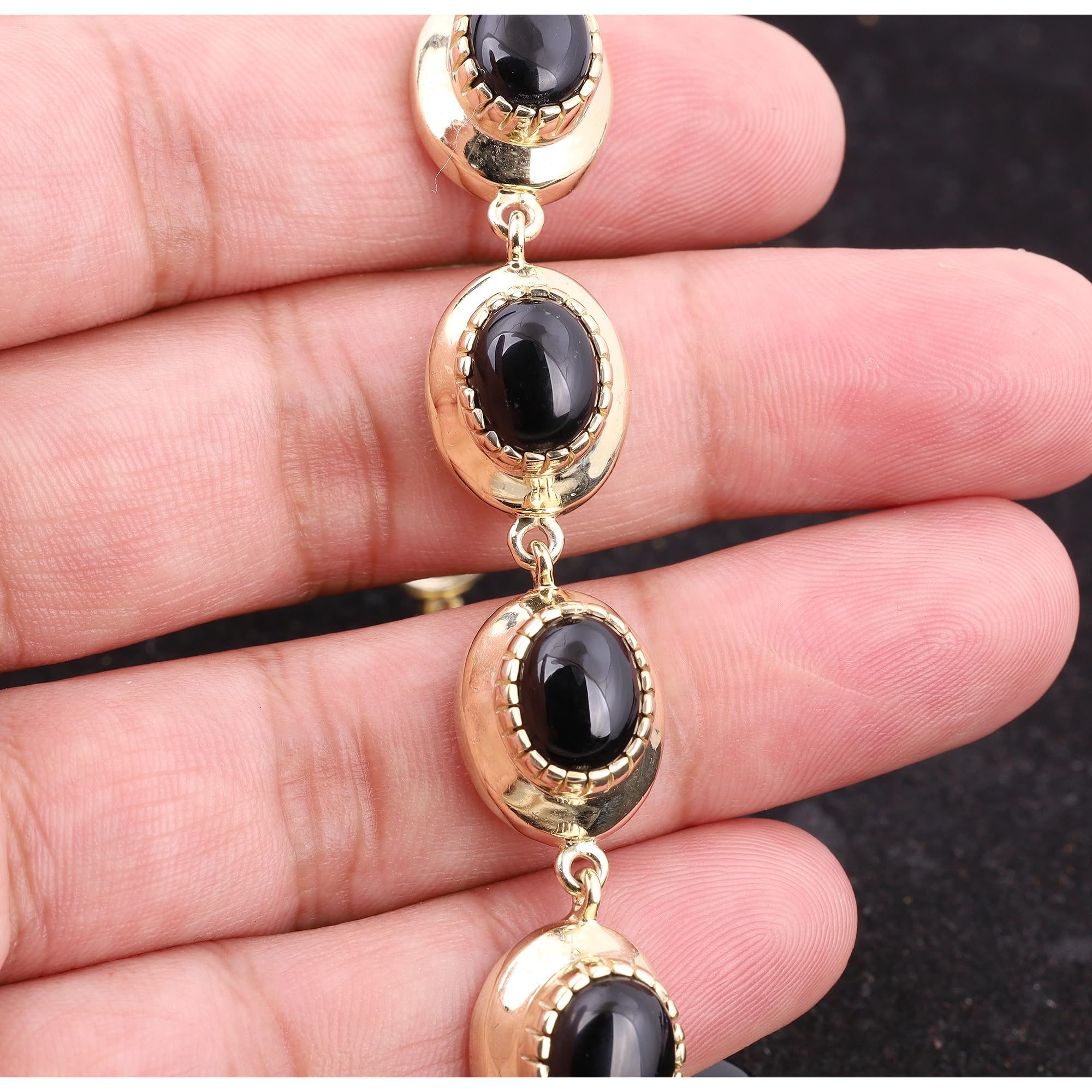 Black Onyx Bracelet Yellow Gold Overlay Bracelet Handmade Link Bracelet Jewelry mothers day gifts