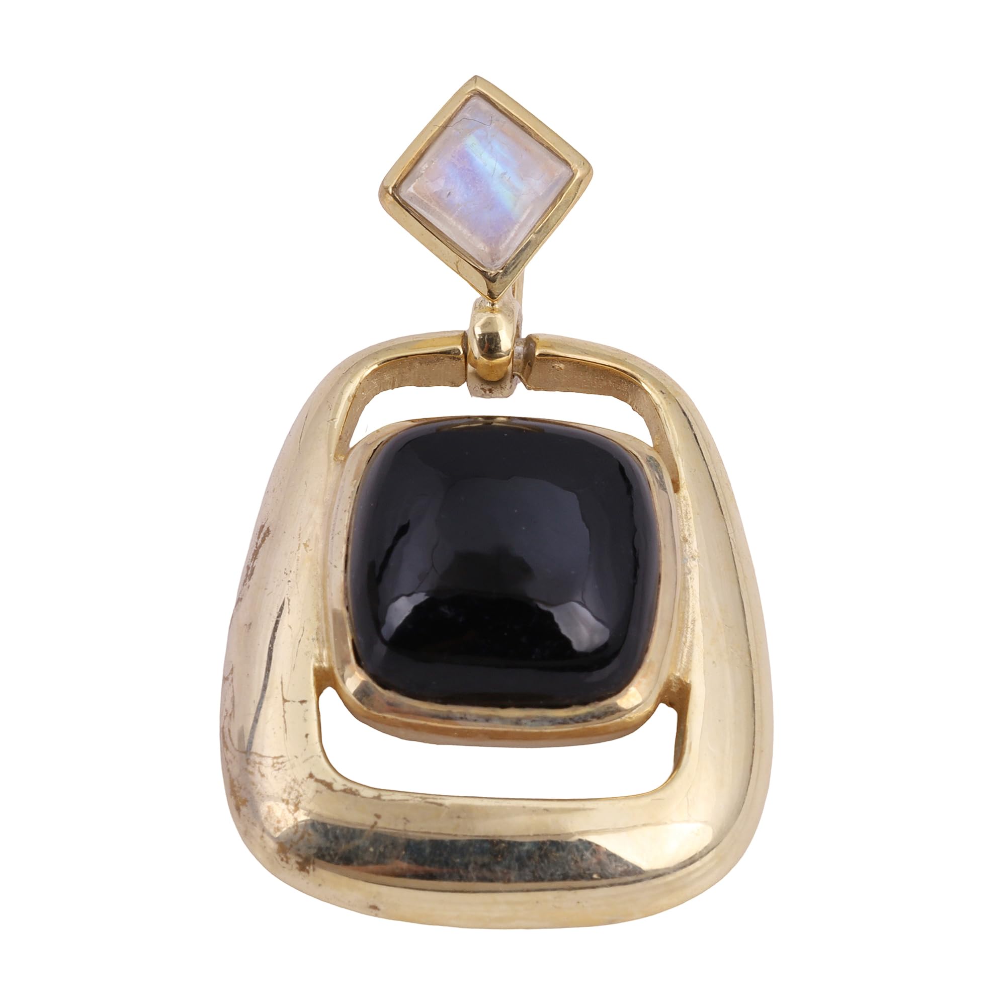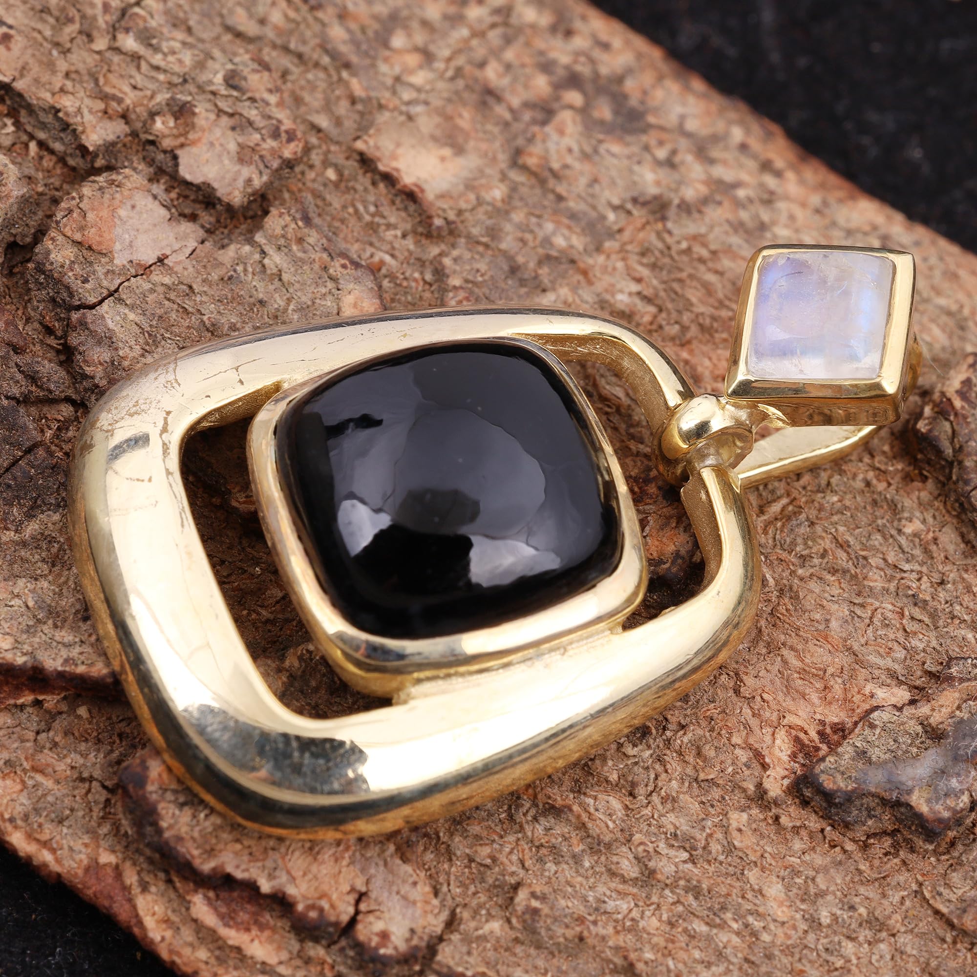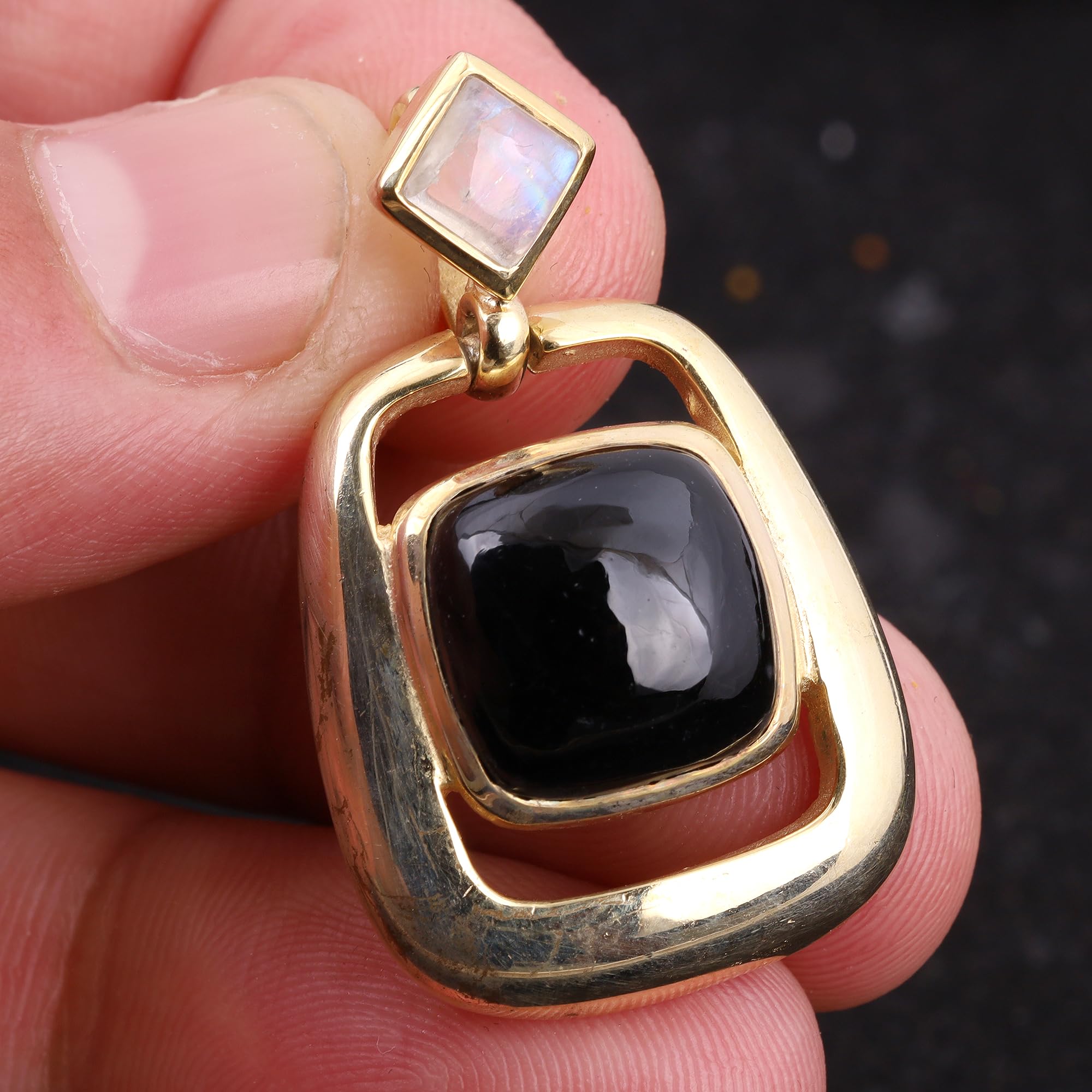Black Onyx & Moonstone Pendant For Women Handmade Yellow Gold Brass Pendant Fashion Jewelry