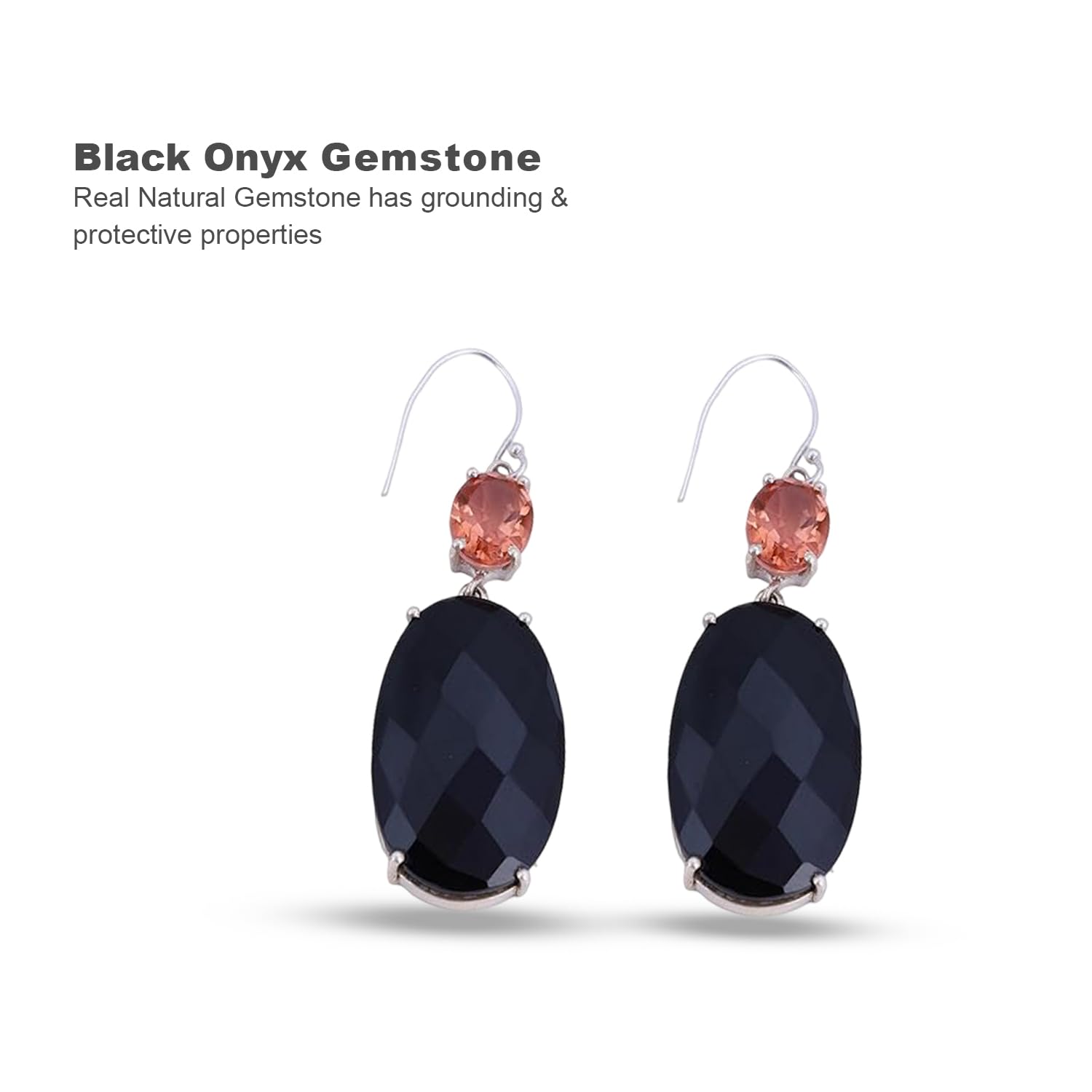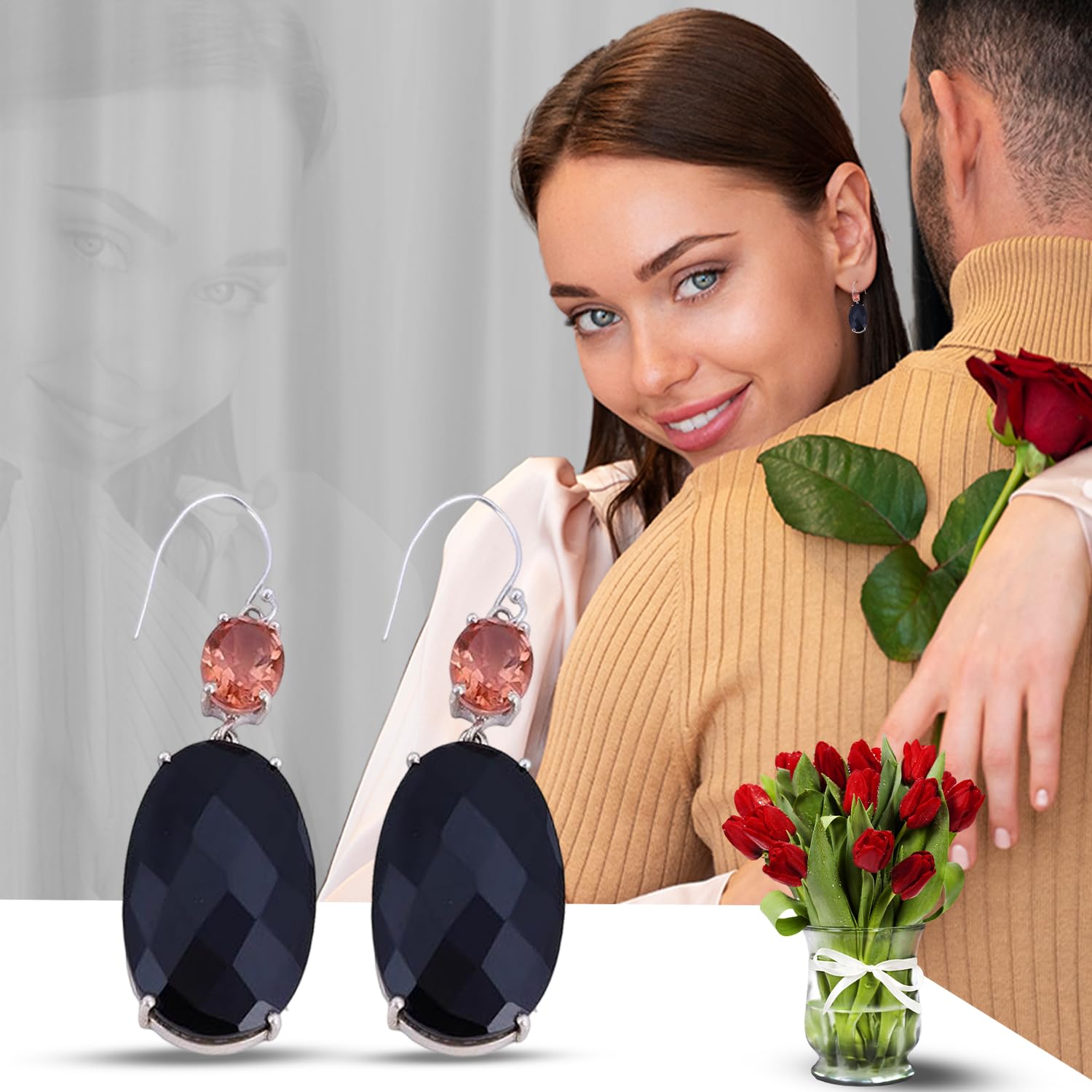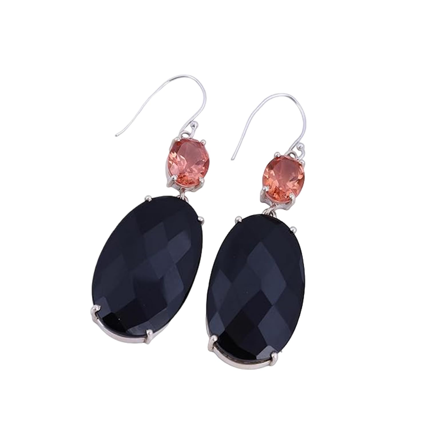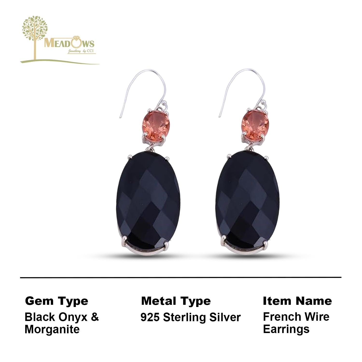 Black Onyx & Morganite Quartz Earring Handmade Prong Setting Gemstone Earring For Women 925 Sterling Silver Earring mothers day gifts