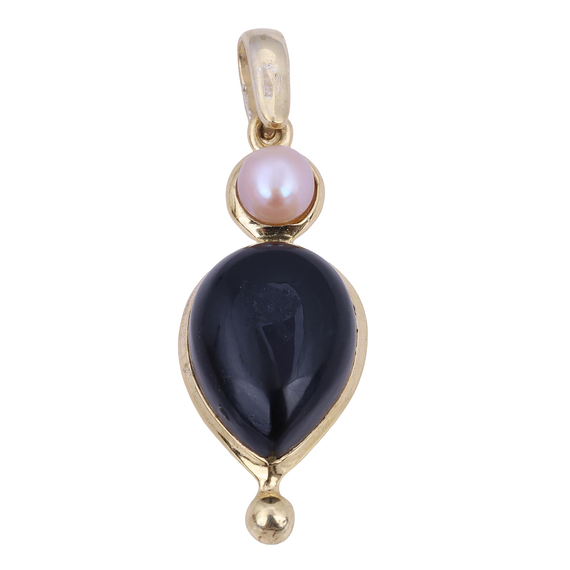 Black Onyx & Pearl Gemstone Pendant For Women Yellow Gold Brass Pendant Fashion Jewelry