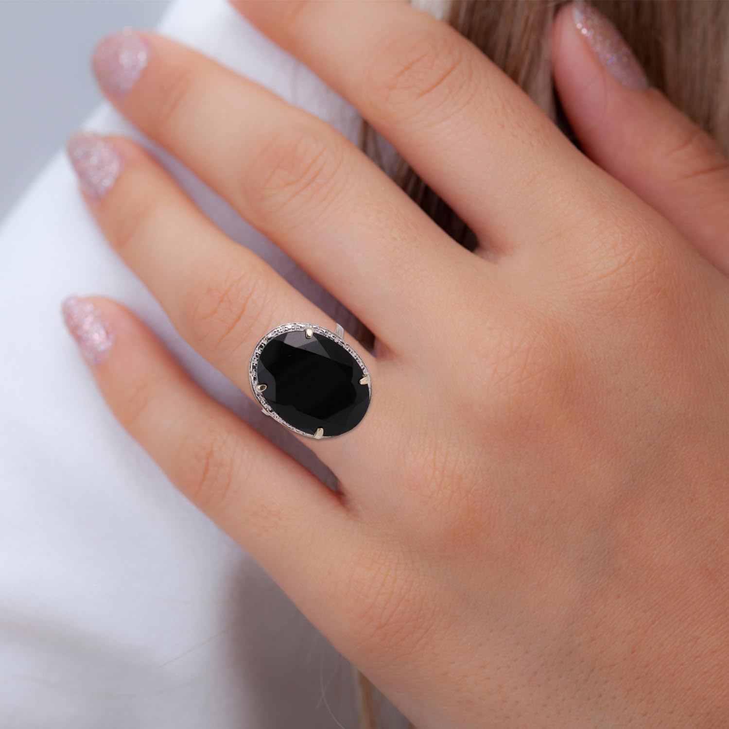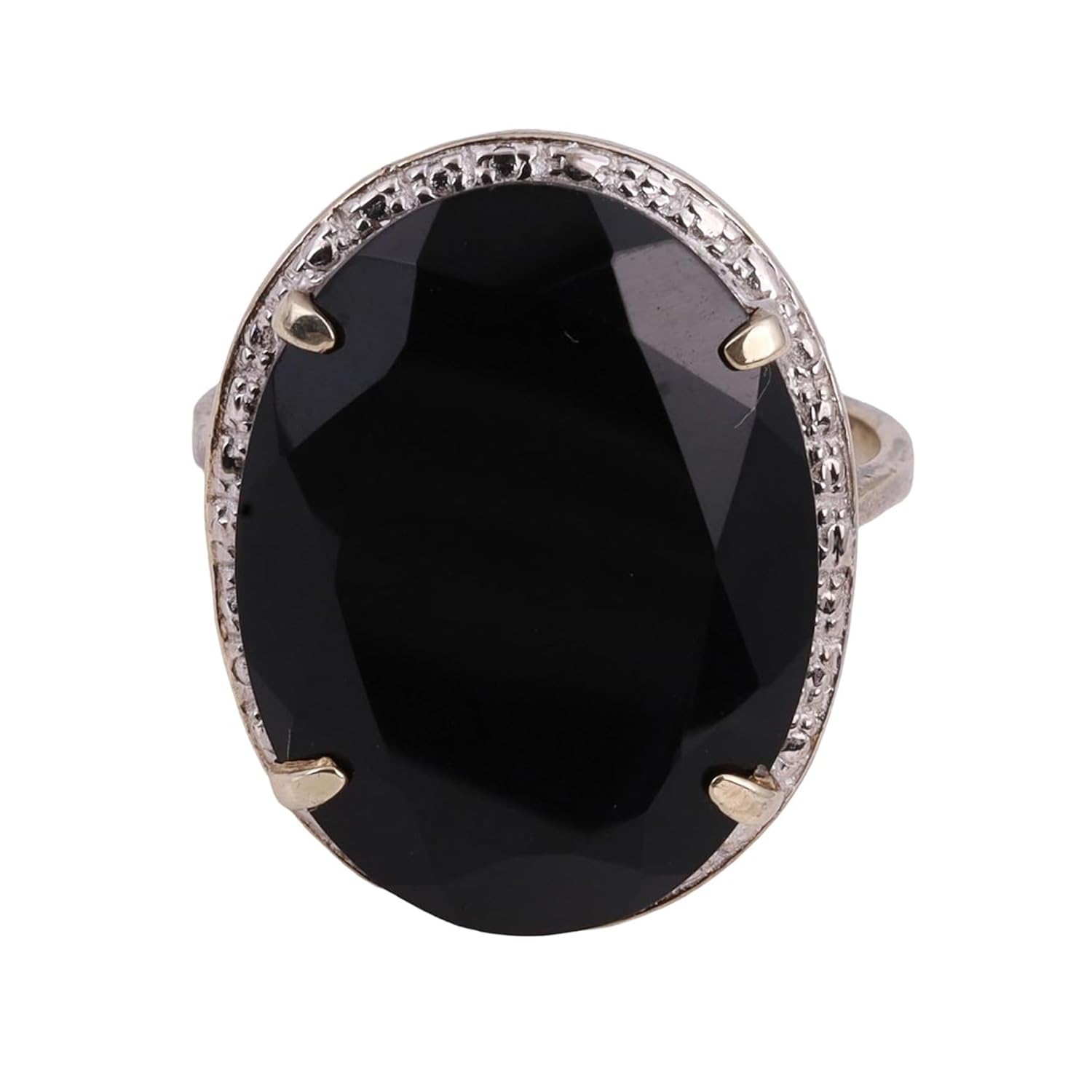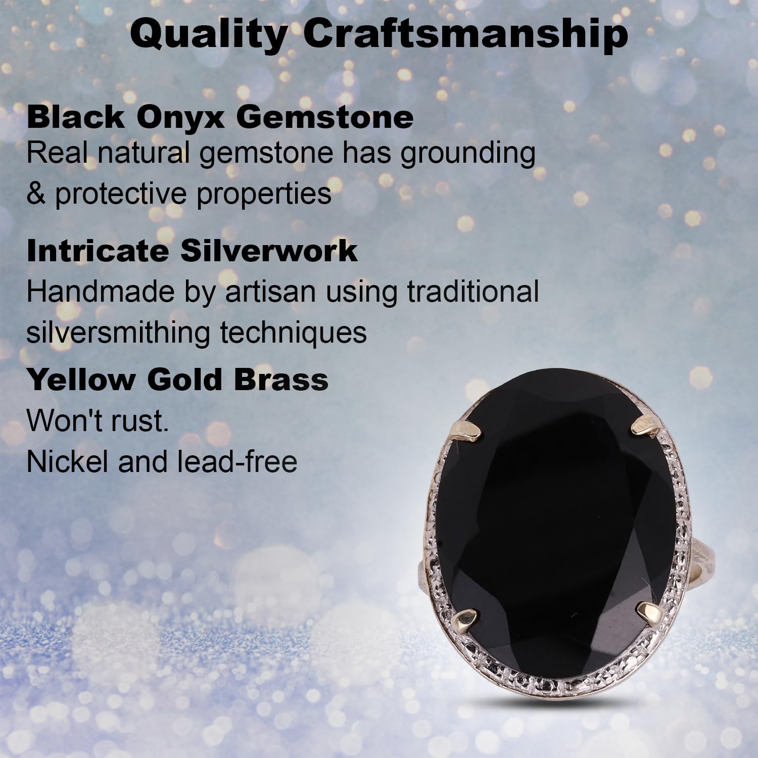 Black Onyx Ring Yellow Gold Brass Ring Handmade Designer Prong Setting Ring Size 7 USA mothers day gifts