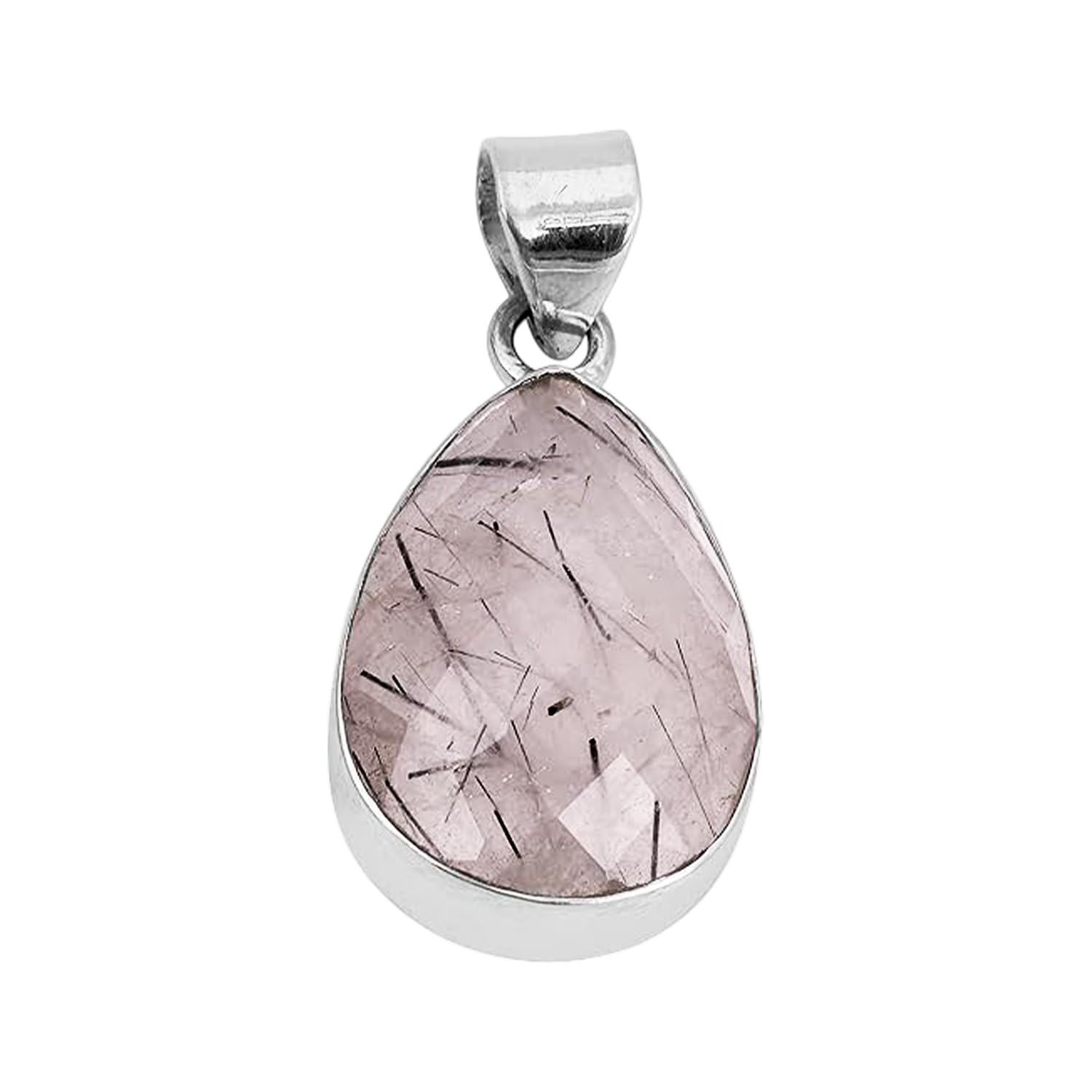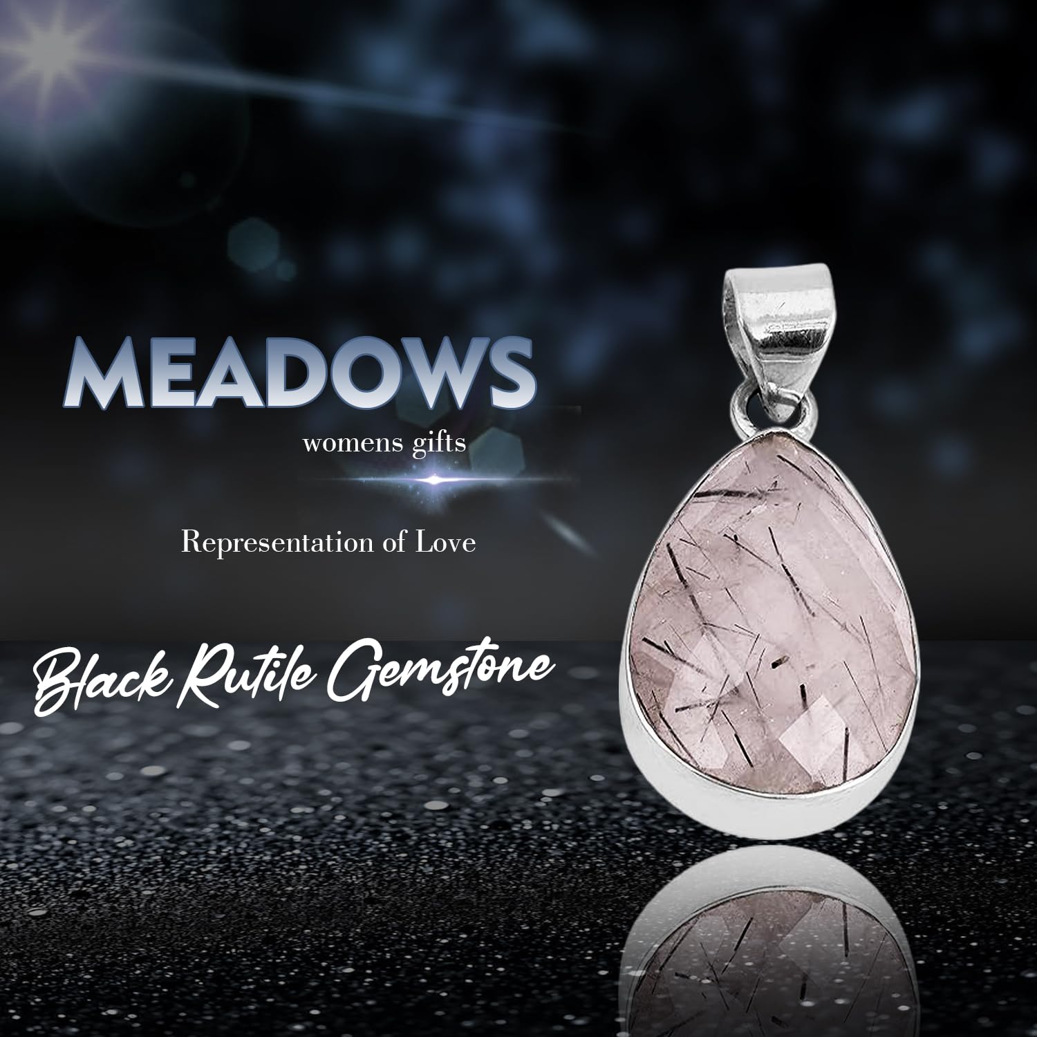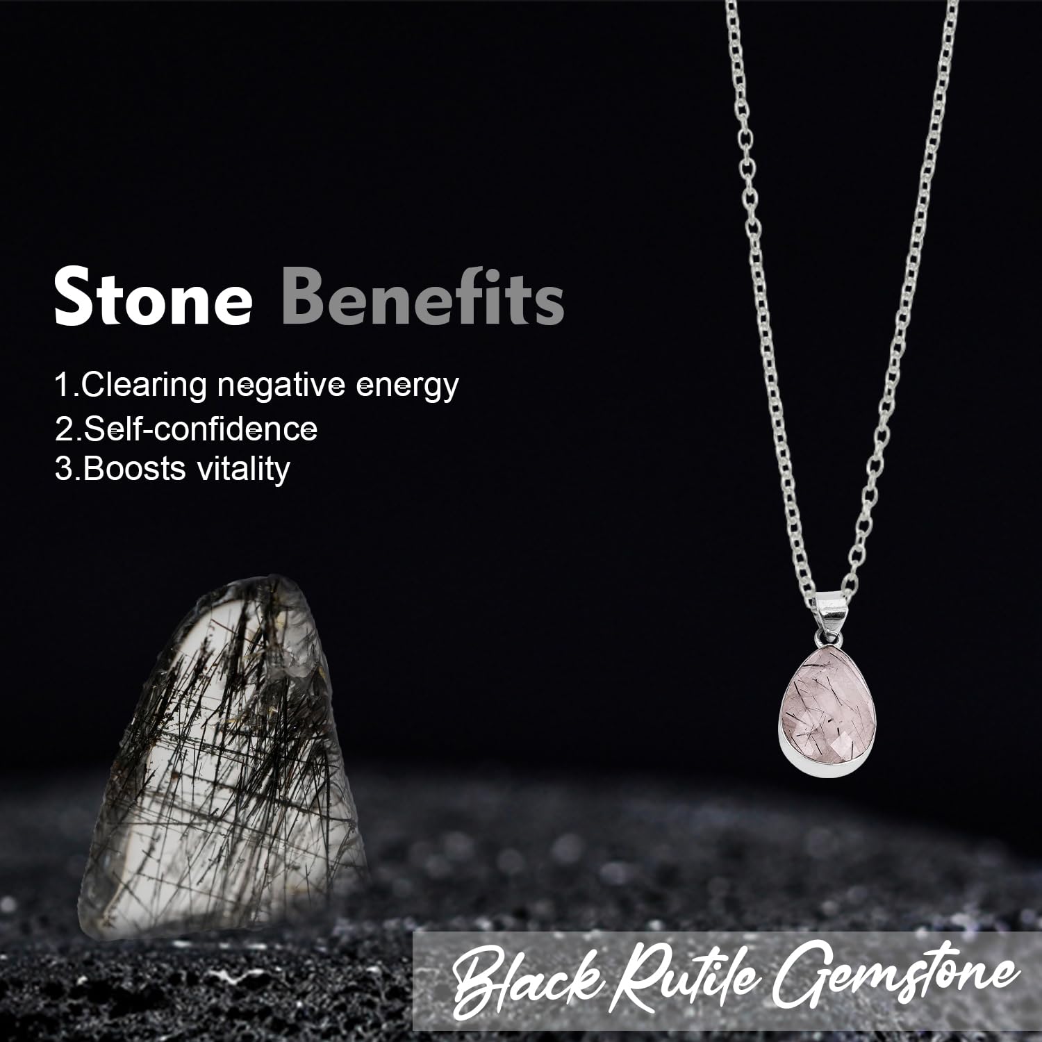 Black Rutile Pendant, Fine 925 Sterling Silver Gemstone Pendant Unisex Jewelry
