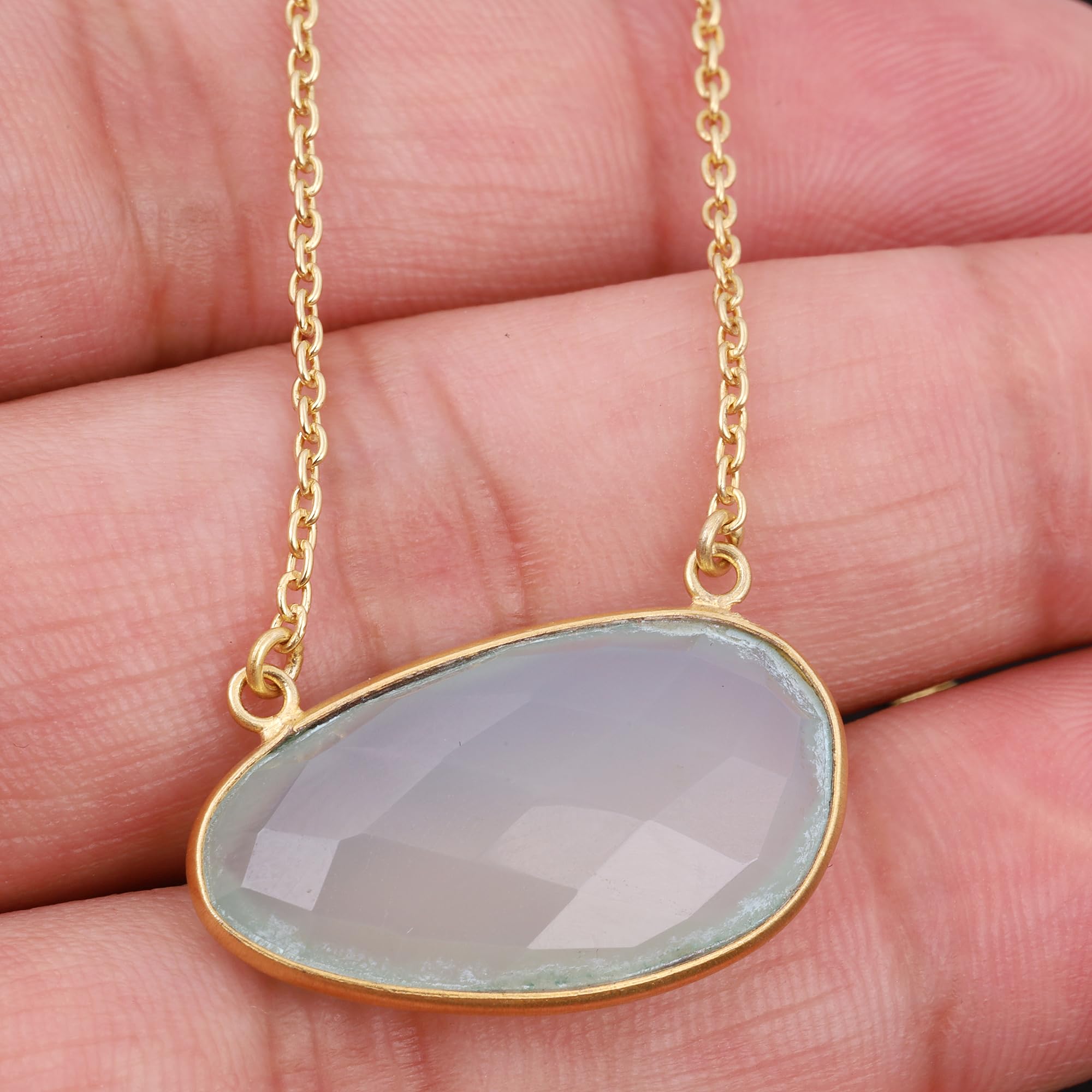 Blue Chalcedony Pendant Handmade Necklace Jewelry Yellow Gold 925 Sterling Silver Chain Necklace