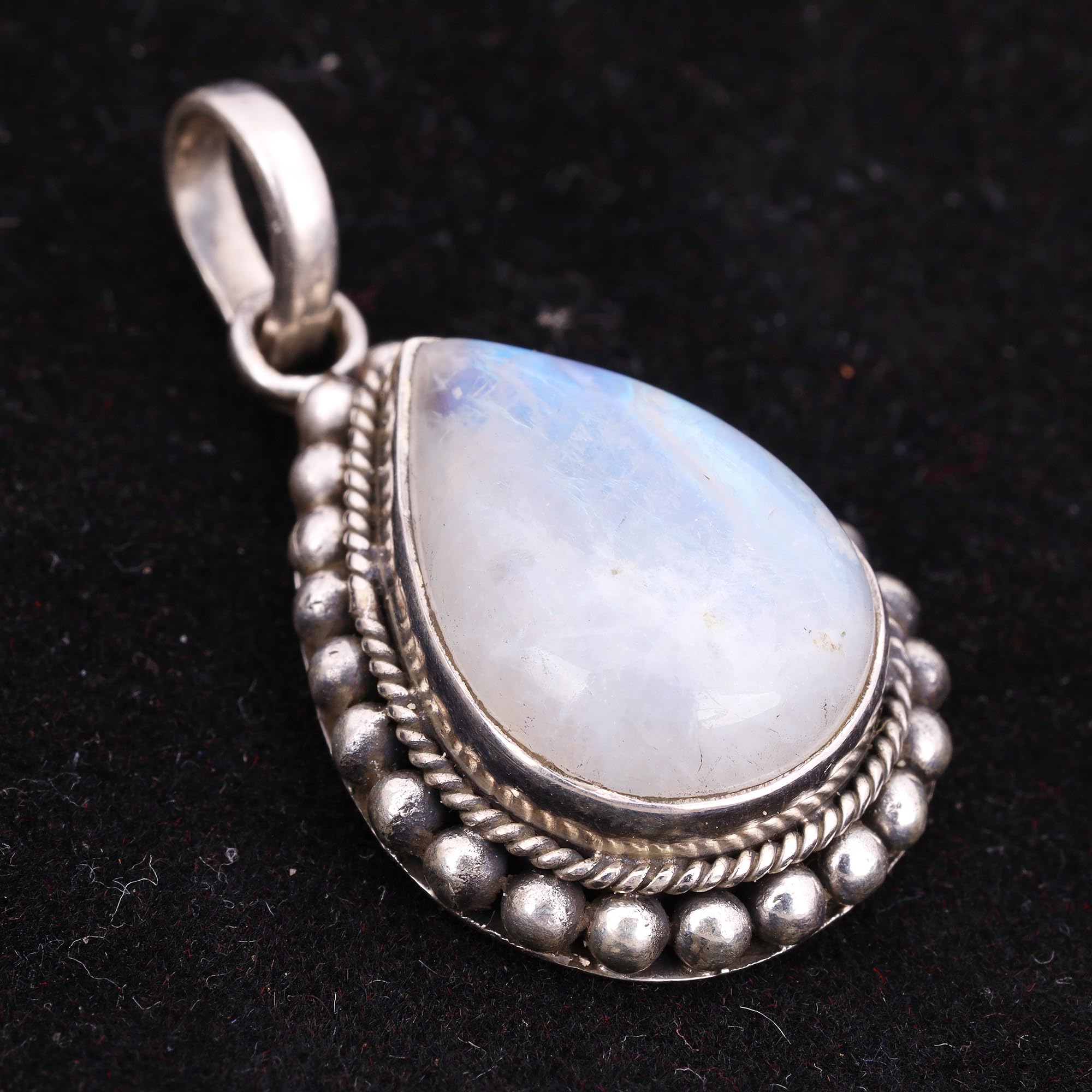 Blue Firey Pear Rainbow Moonstone Pendant, 925 Sterling Silver Pendant Jewellery