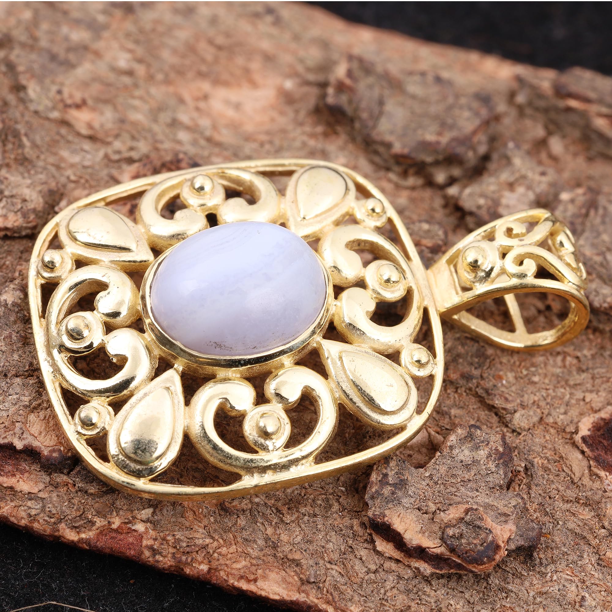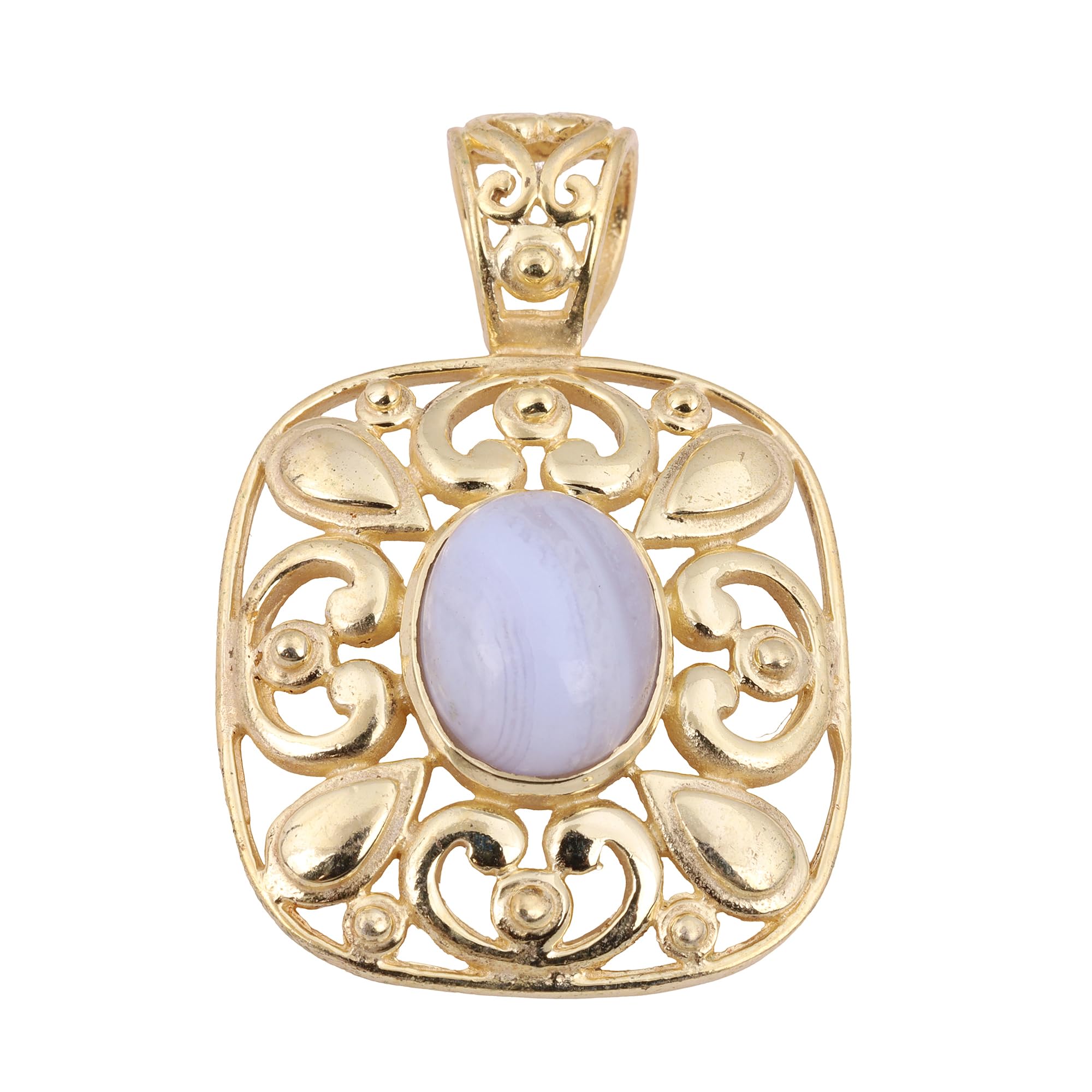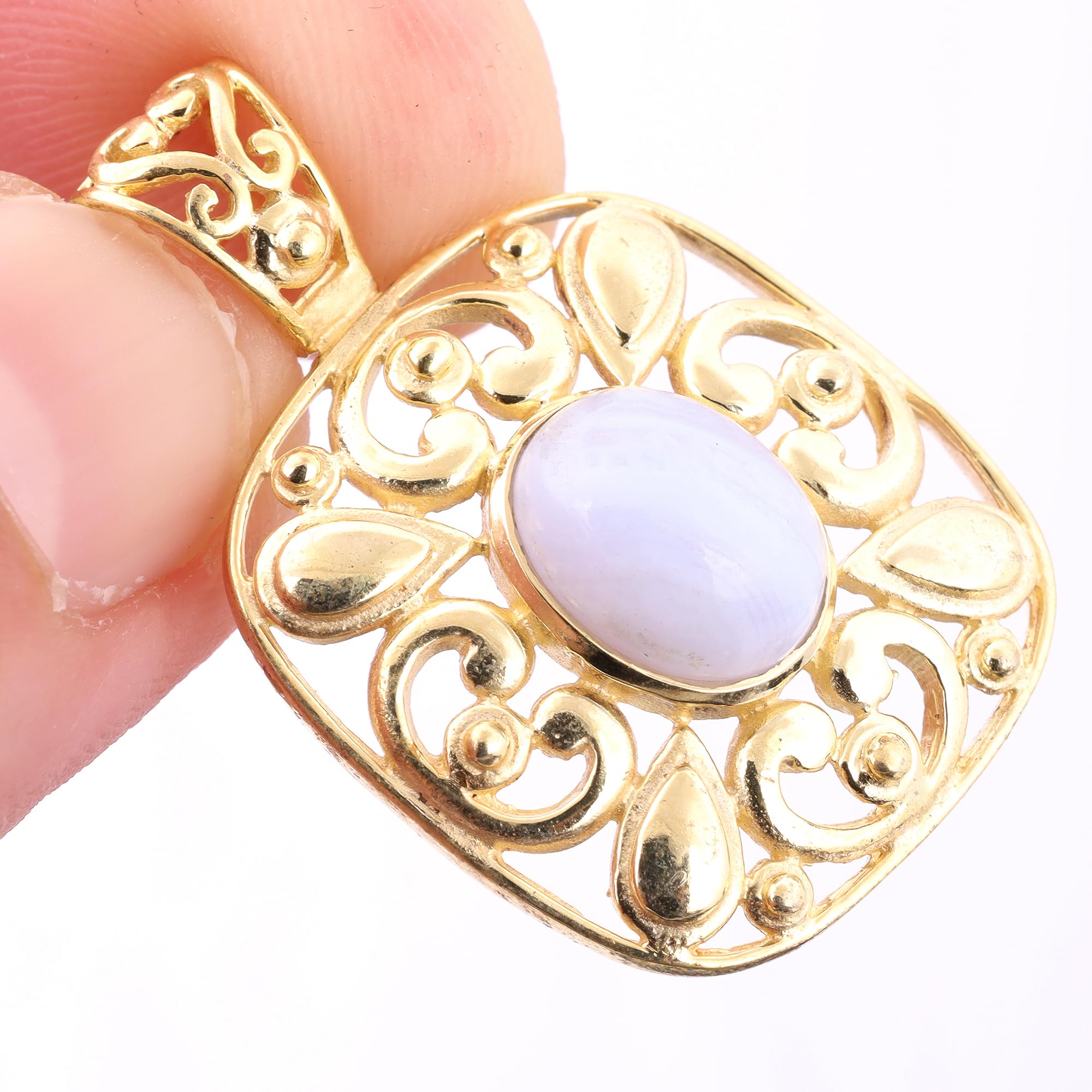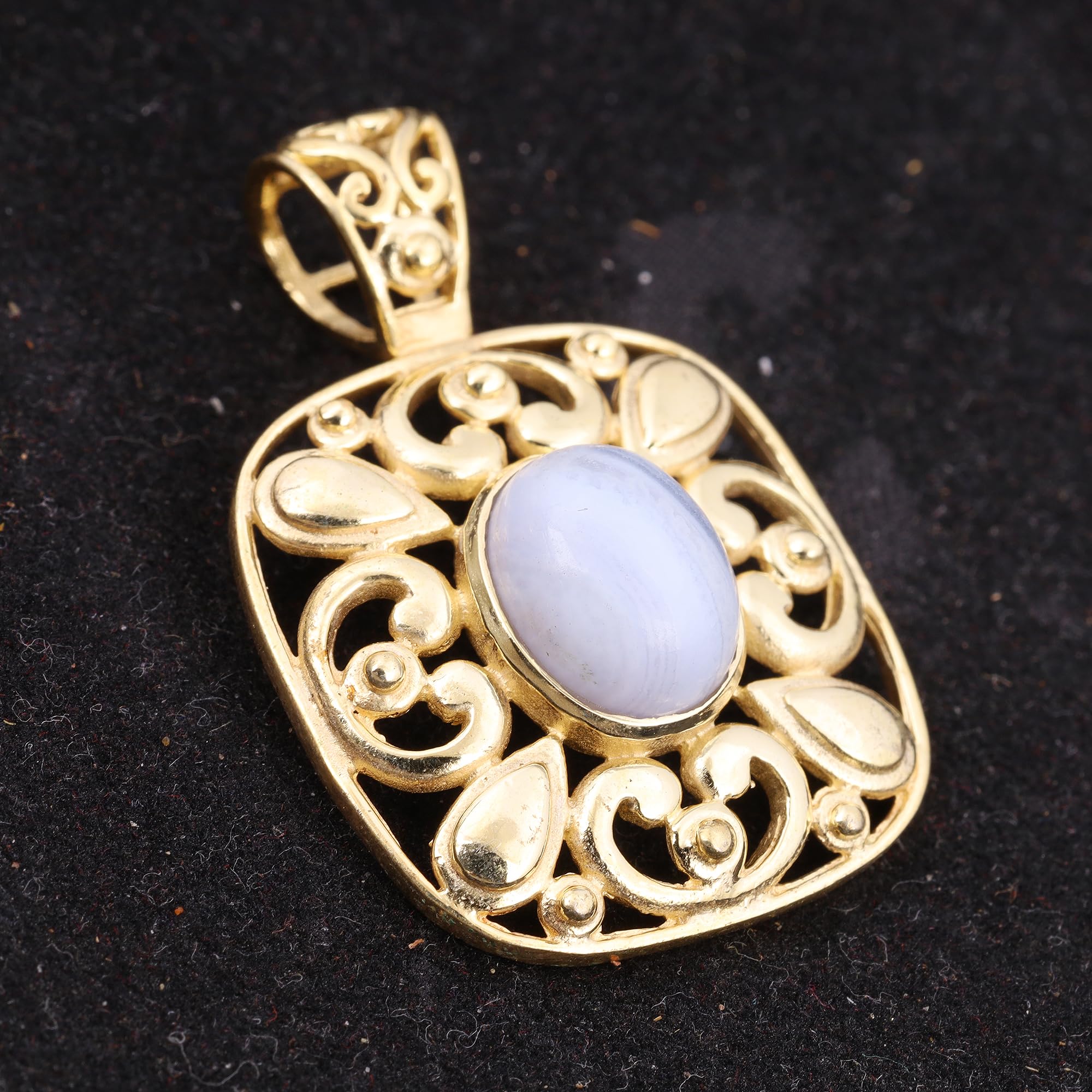 Blue Lace Agate Pendant For Women Handmade Designer Yellow Gold Brass PendantBlue Lace Agate Pendant For Women Handmade Designer Yellow Gold Brass Pendant