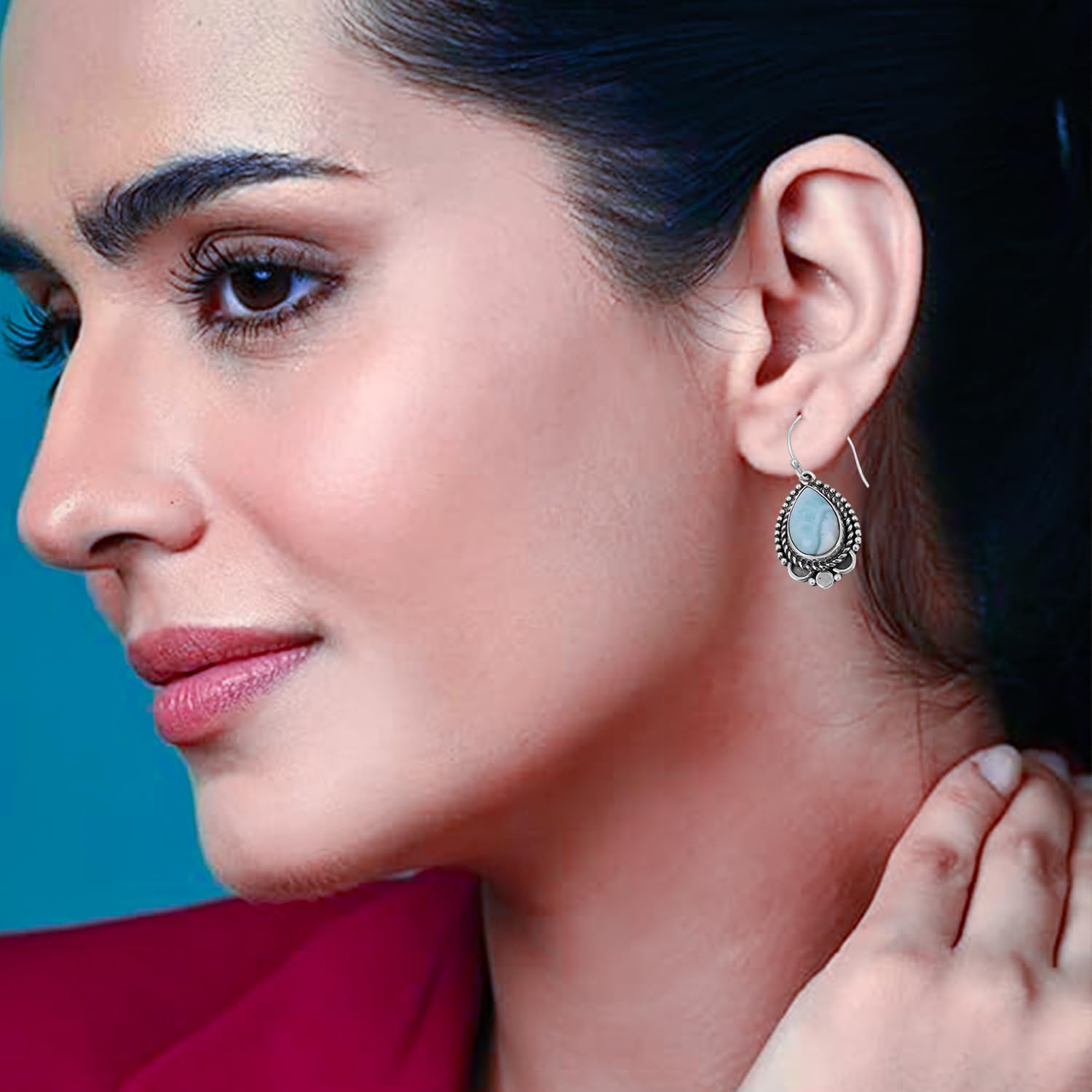 Blue Larimar Earring Handmade Bezel Setting Earring For Women 925 Sterling Silver Earring mothers day gifts