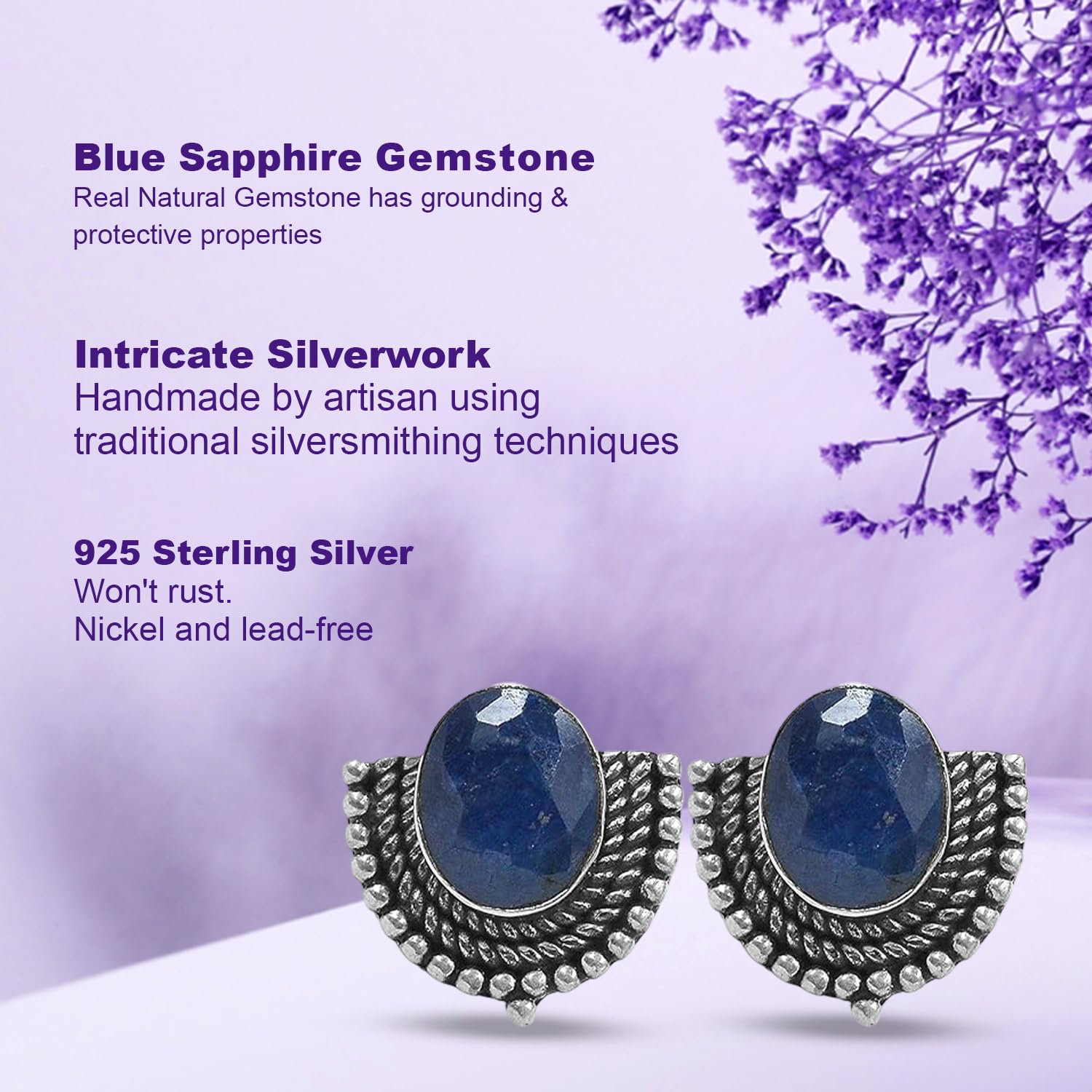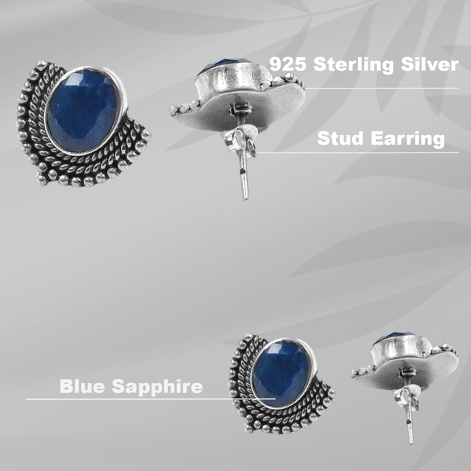 Blue Sapphire Stud Earring, 925 Sterling Silver Earring, Handmade Fine Silver mothers day gifts