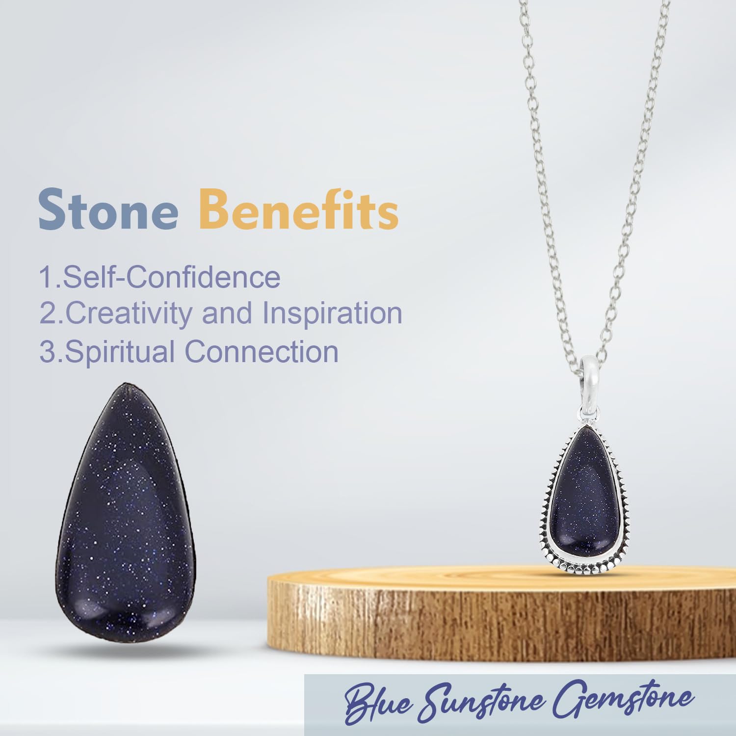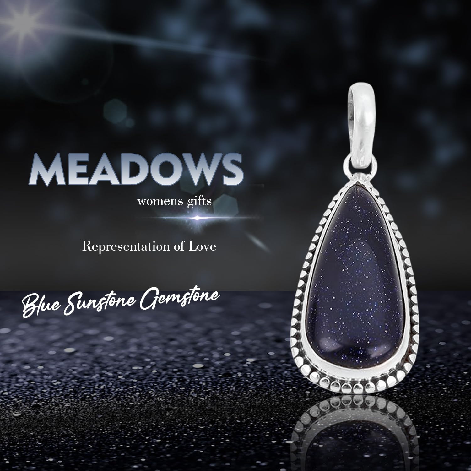 Blue Sunstone Pendant, Pear Gemstone 925 Sterling Silver Pendant Jewellery