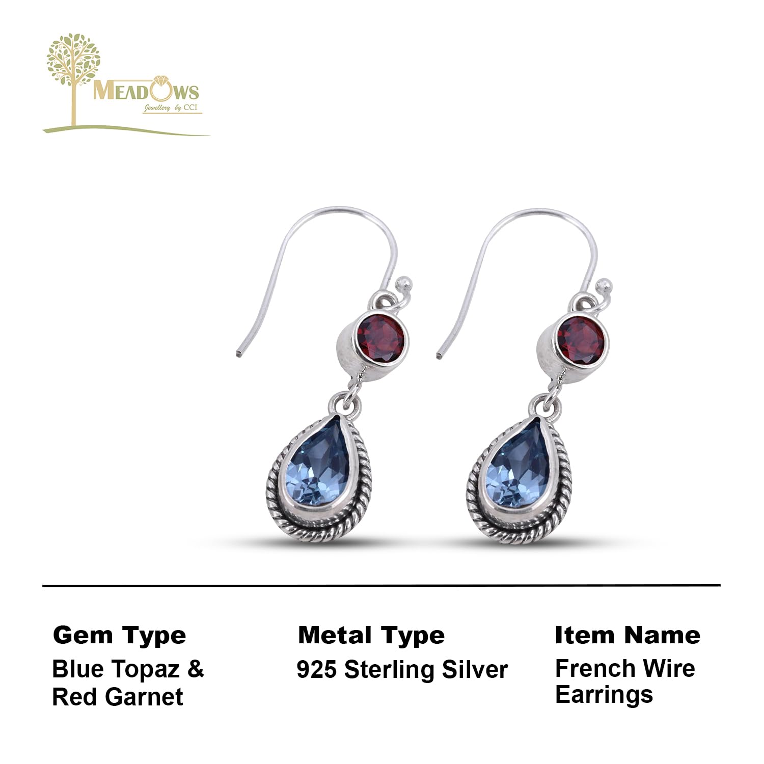 Blue Topaz & Red Garnet Earring Natural Gemstone Earring For Women 925 Sterling Silver Earring mothers day gifts