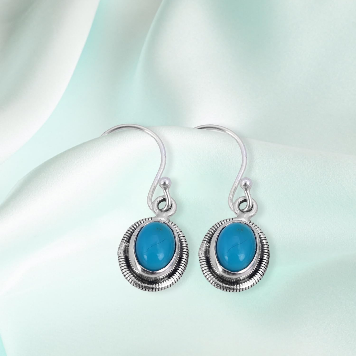 Blue Turquoise Earring Handmade Bezel Setting Earring For Women 925 Sterling Silver Earring mothers day gifts