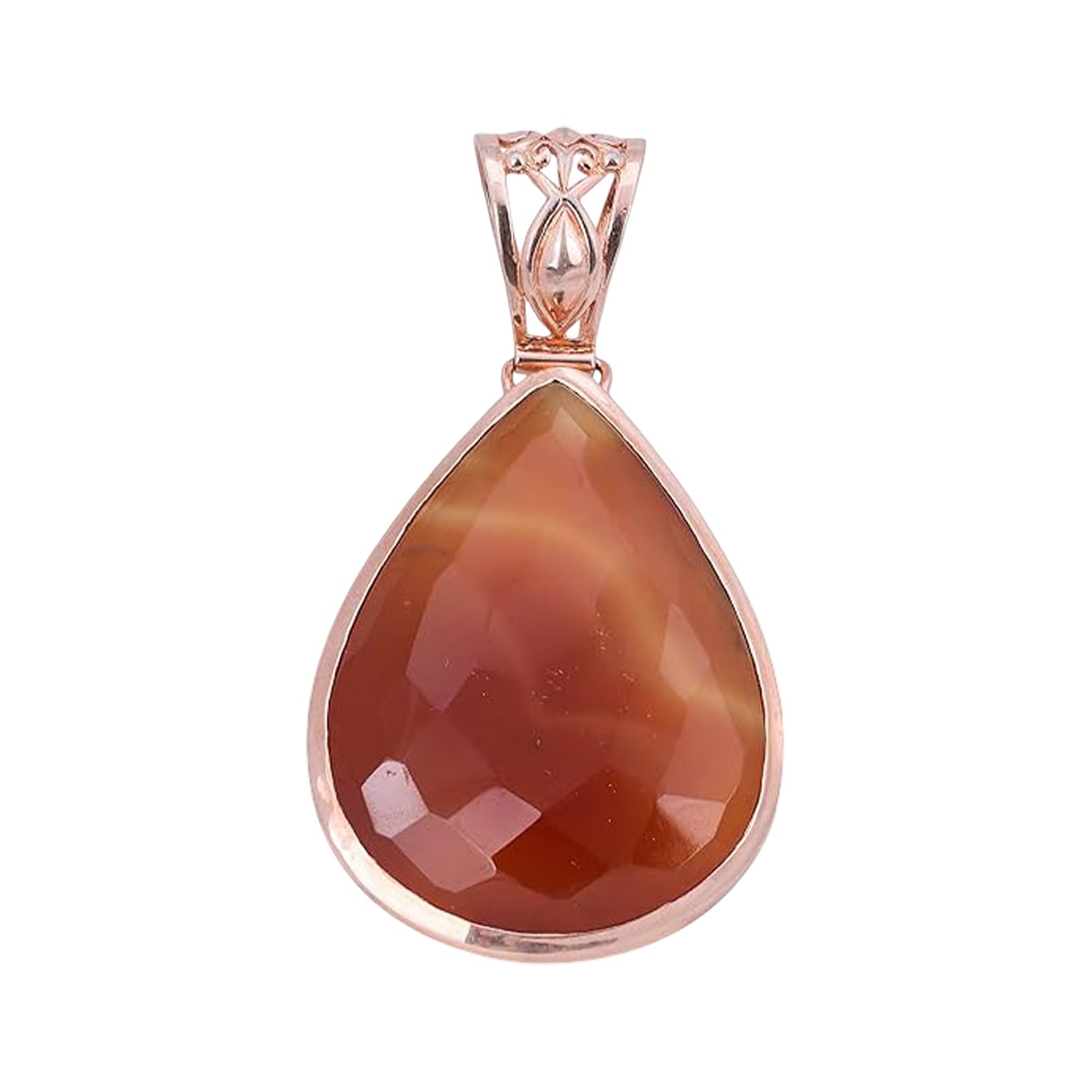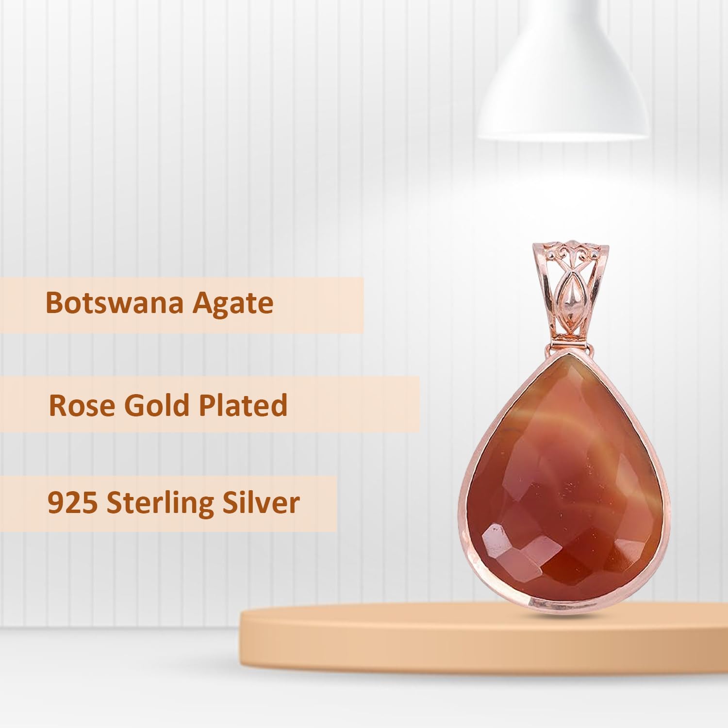 Botswana Agate Pendant, Rose Gold Plated 925 Sterling Silver Gemstone Pendant, Bohemian Pendants