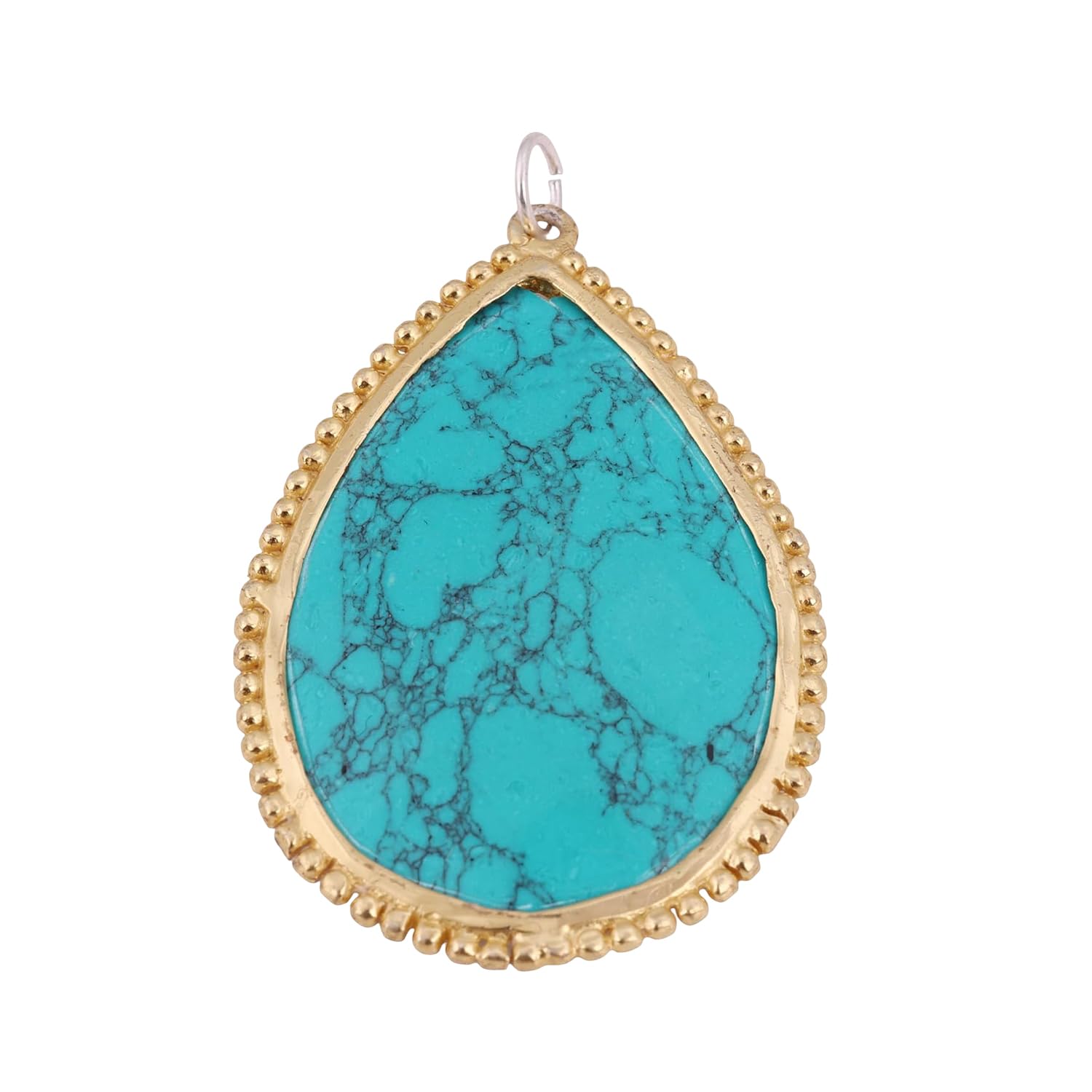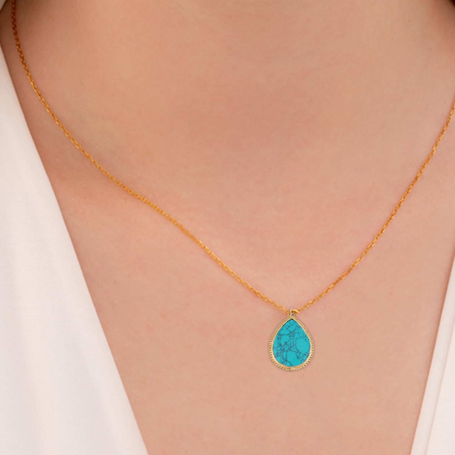 Checker Cut Turquoise Pendant Yellow Gold 925 Sterling Silver Handmade Statement Pendant mothers day gifts