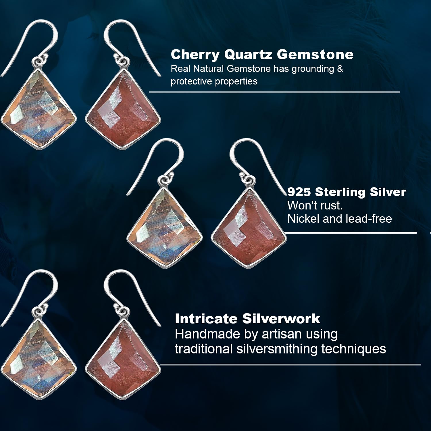 Cherry Quartz Earring, Dangle Earring For Women, Healing Crystal Earring, 925 Sterling Silver Earring