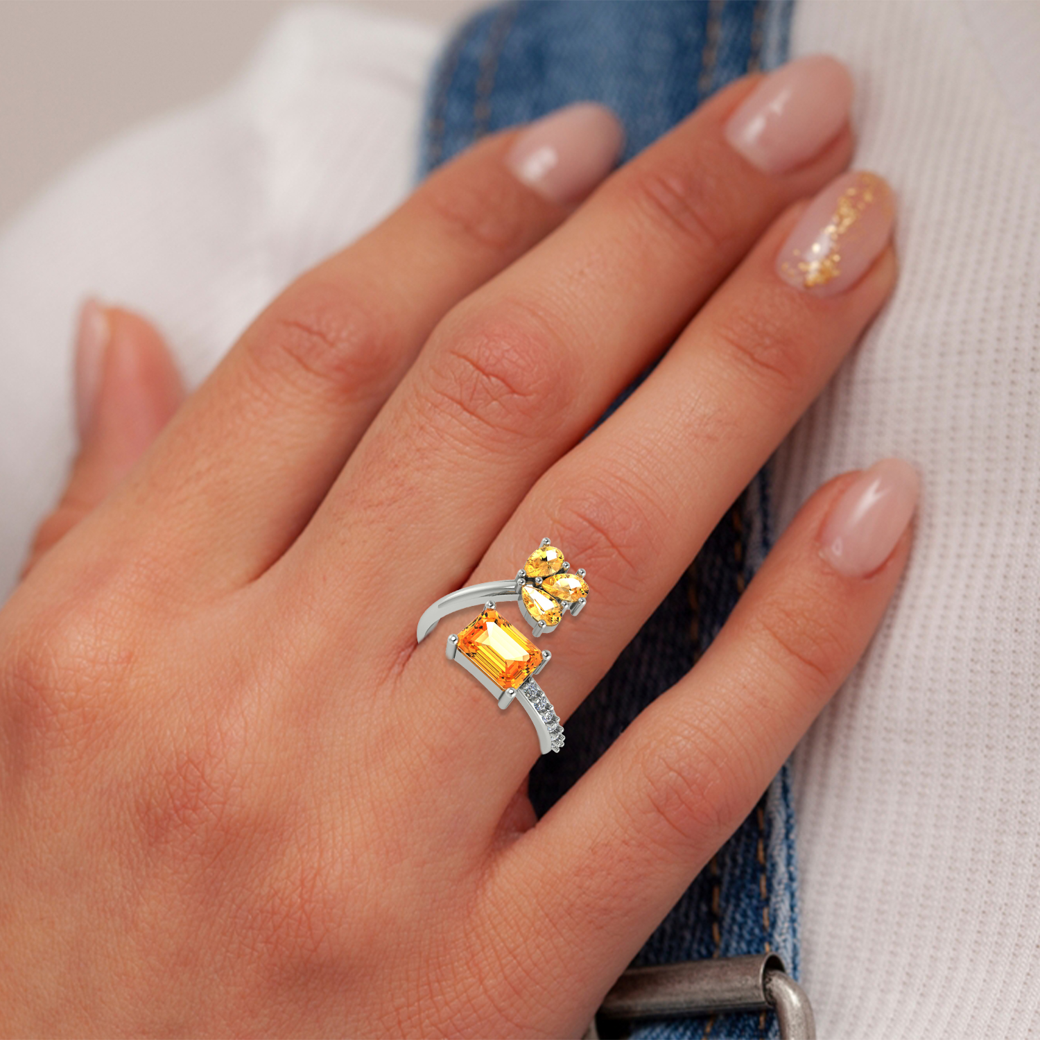 Citrine Quartz Adjustable Silver Ring with CZ Accents ? Floral-Inspired Design