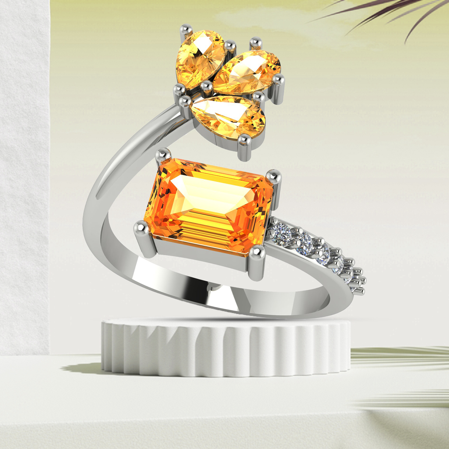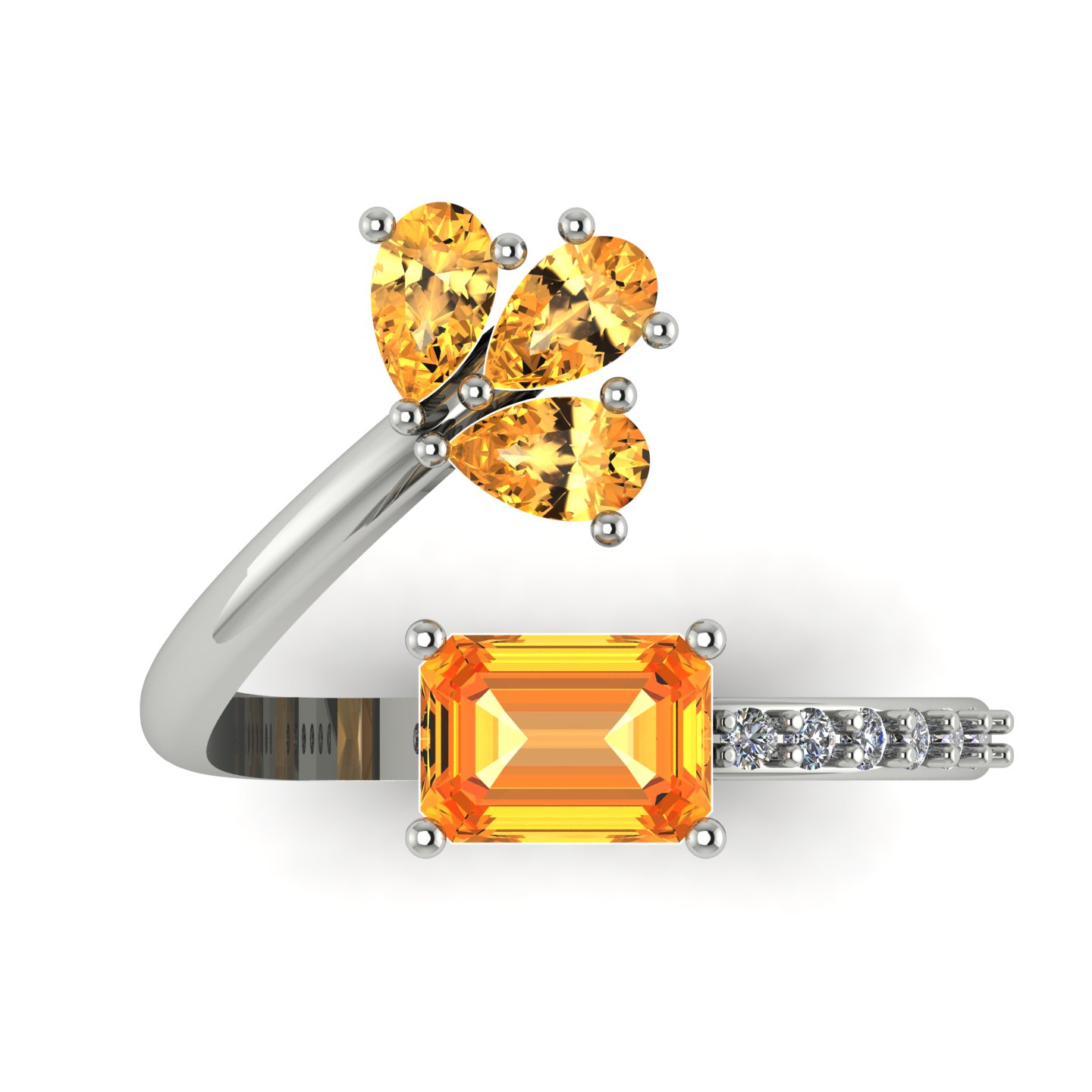 Citrine Adjustable Silver Ring with CZ Accents ? Floral-Inspired Design