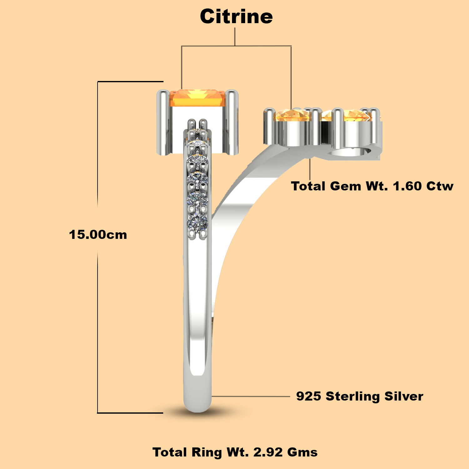 Brighten up your jewelry collection with this Citrine Adjustable Silver Ring, designed to radiate warmth and elegance.