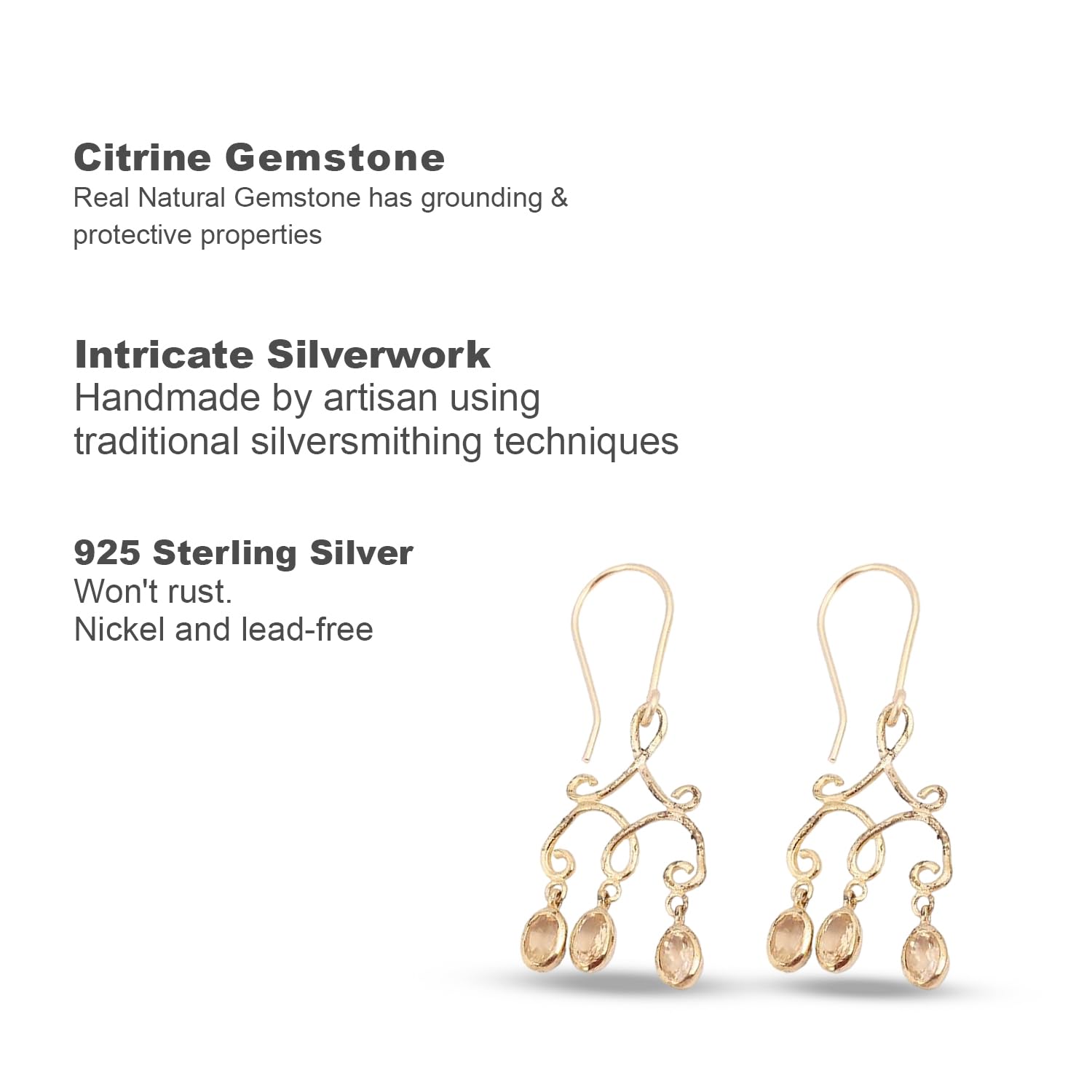 Citrine Earring Fashion Earring Yellow Gold Brass Earrings Bohemian Traditional Earrings mothers day gifts