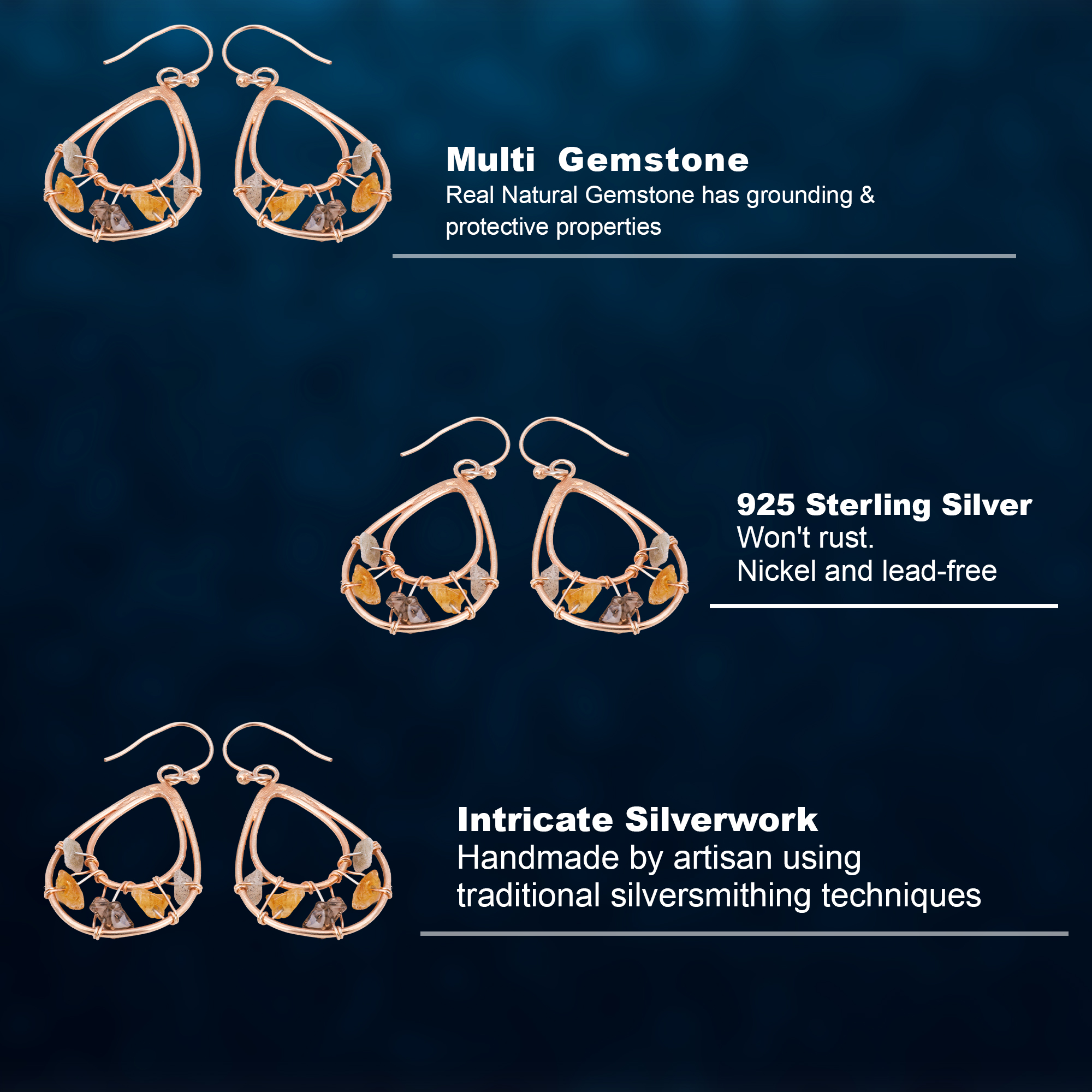 ???? Handcrafted Design ? Each earring features raw, unpolished gemstones that make every pair one of a kind.