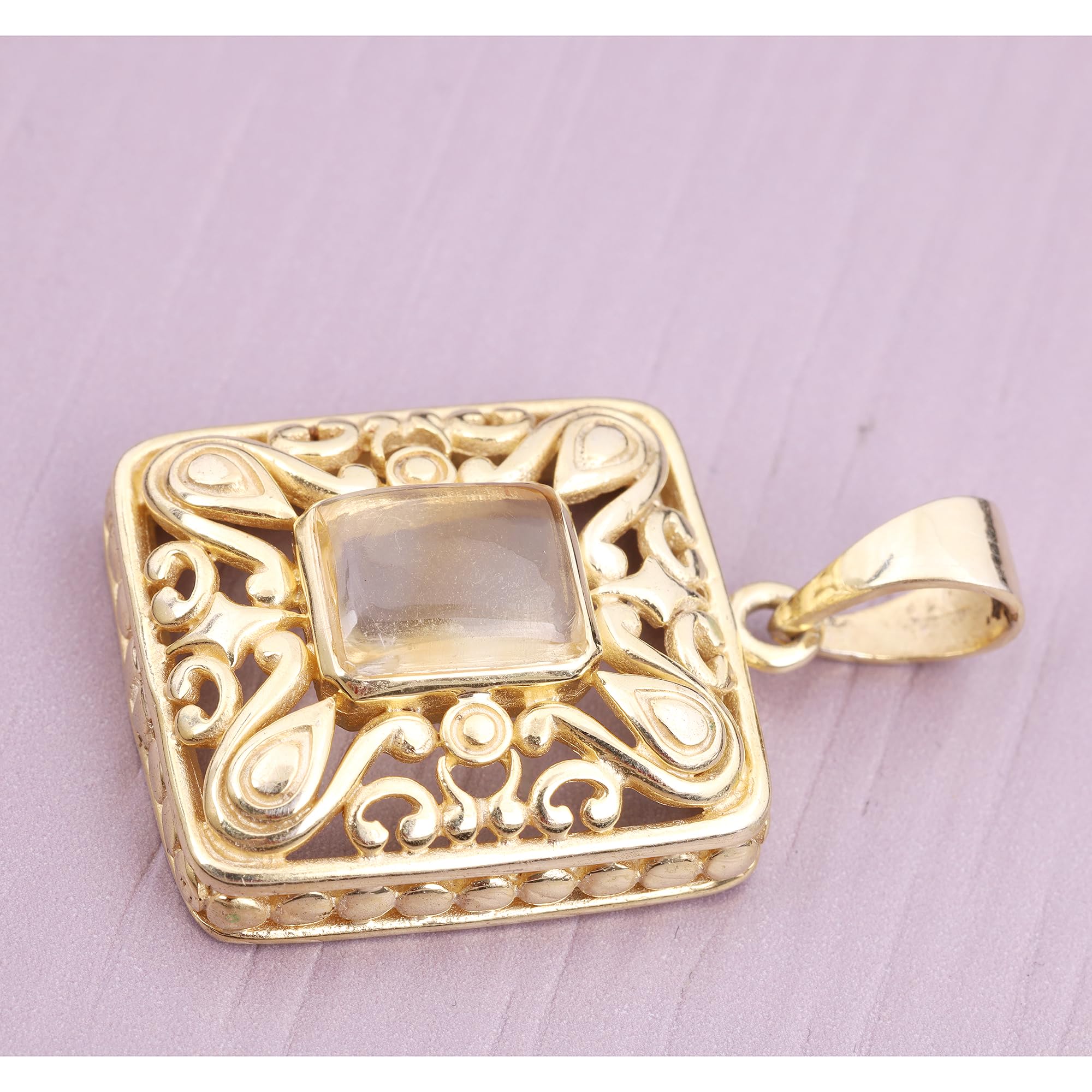 Be the first to review “Clear Quartz Pendant For Women Yellow Gold Brass Pendant Wedding Jewelry”