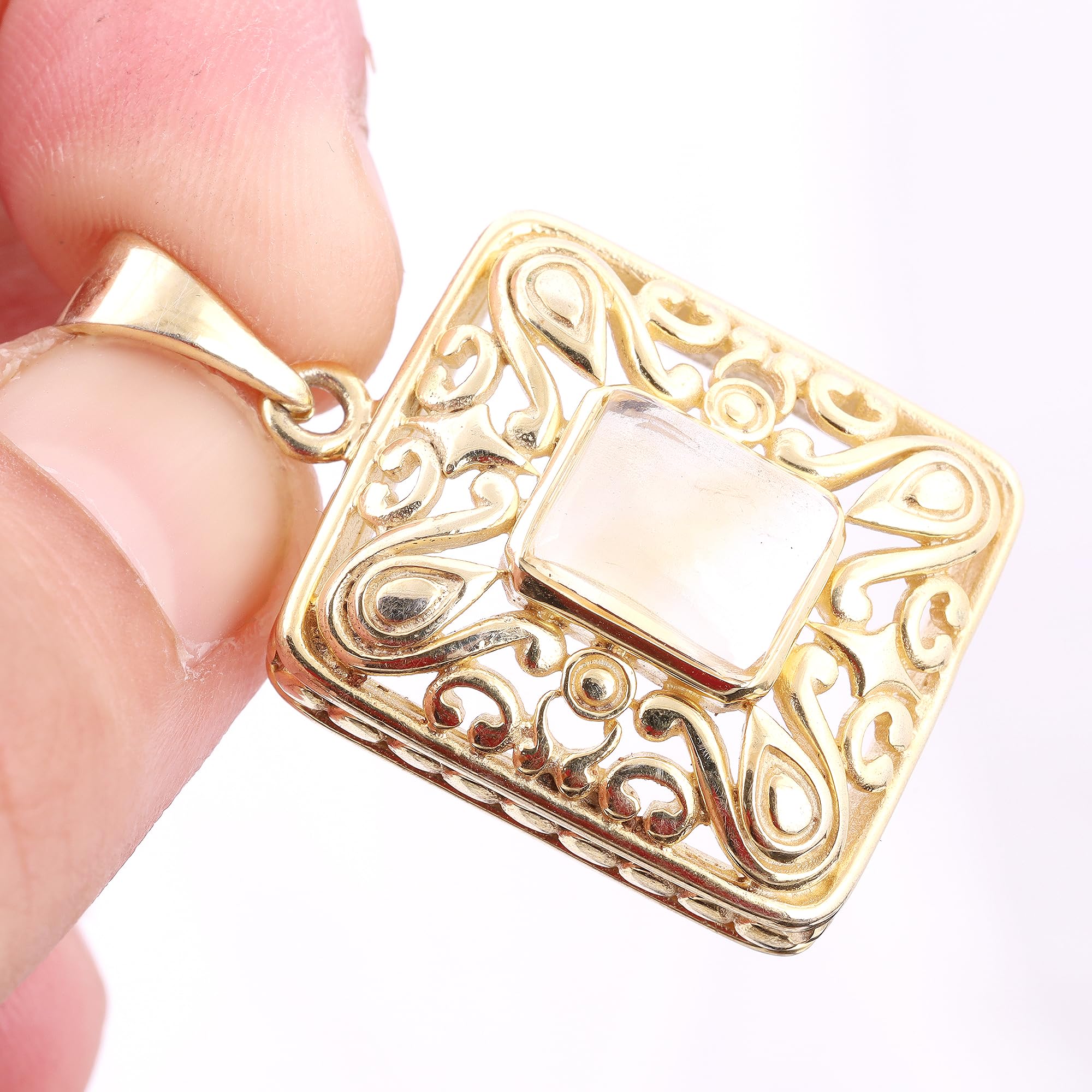 Clear Quartz Pendant For Women Yellow Gold Brass Pendant Wedding Jewelry