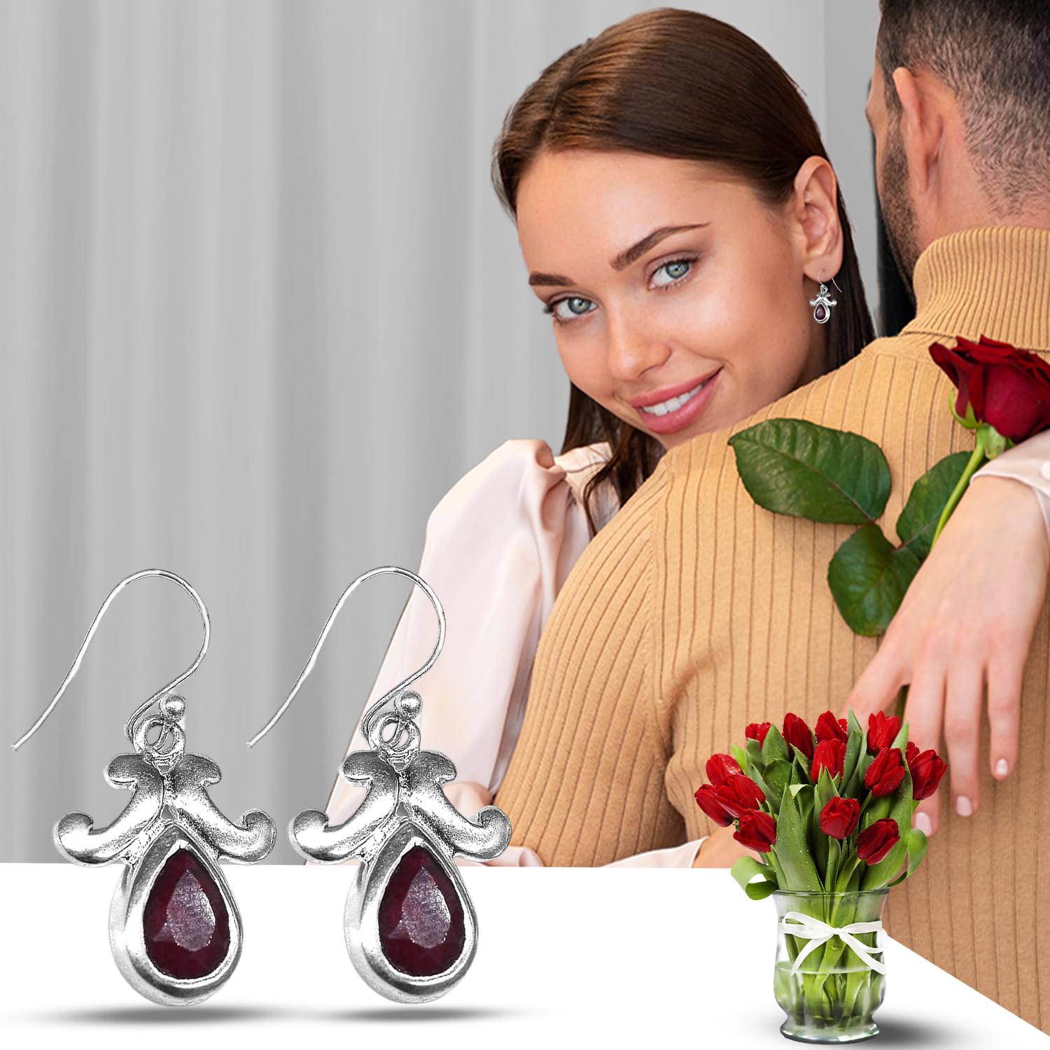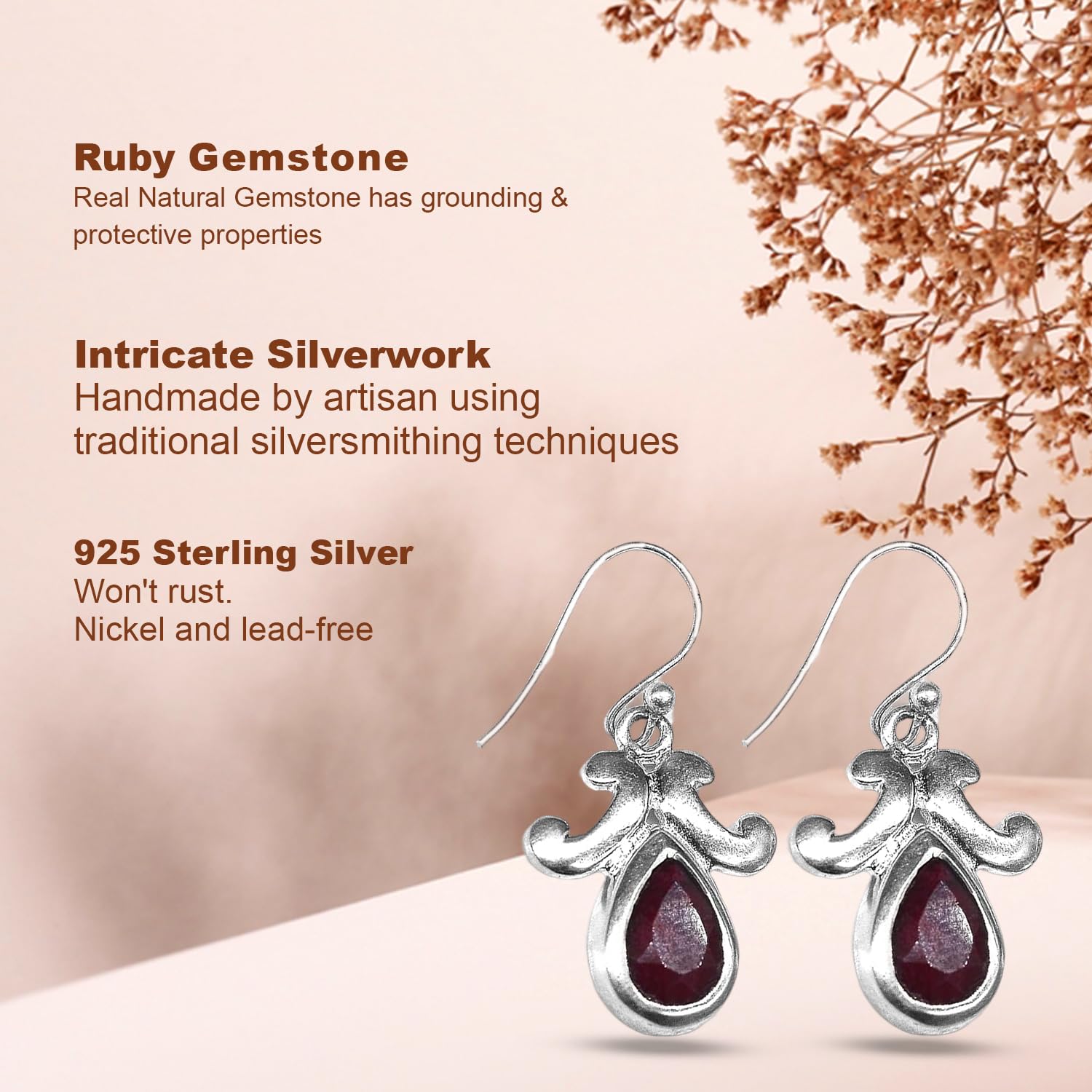 Corundum Ruby Earring, Healing Gemstone Earring, 925 Sterling Silver Earring, Bohemian Earring