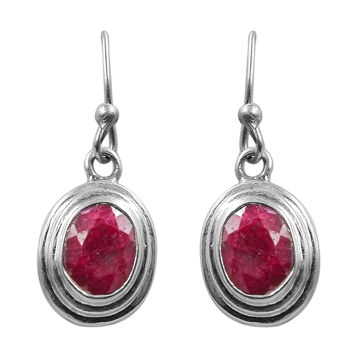 Corundum Ruby Earring, Women Earring Dangle, Healing Gemstone Earring, 925 Sterling Silver Jewelry