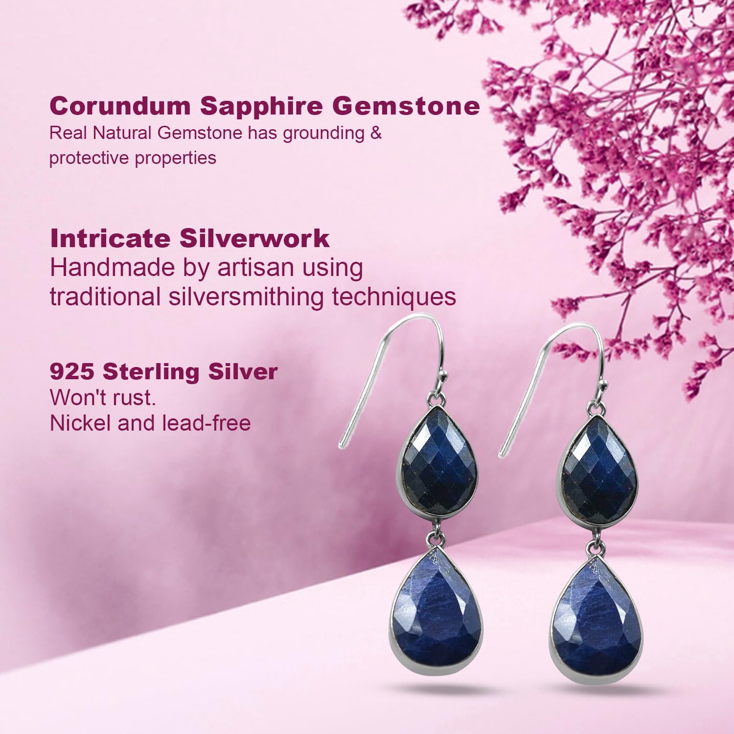 Corundum Sapphire Earring, Dangle Earring For Women, Handmade Earring, 925 Sterling Silver Earring