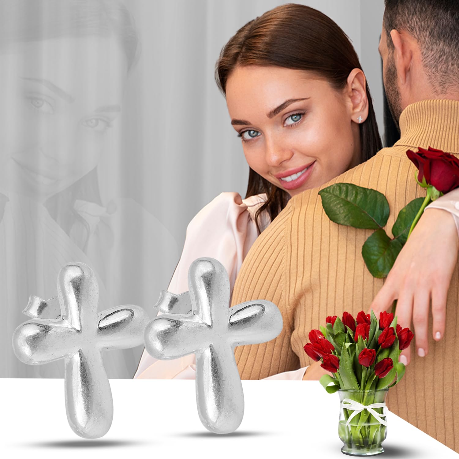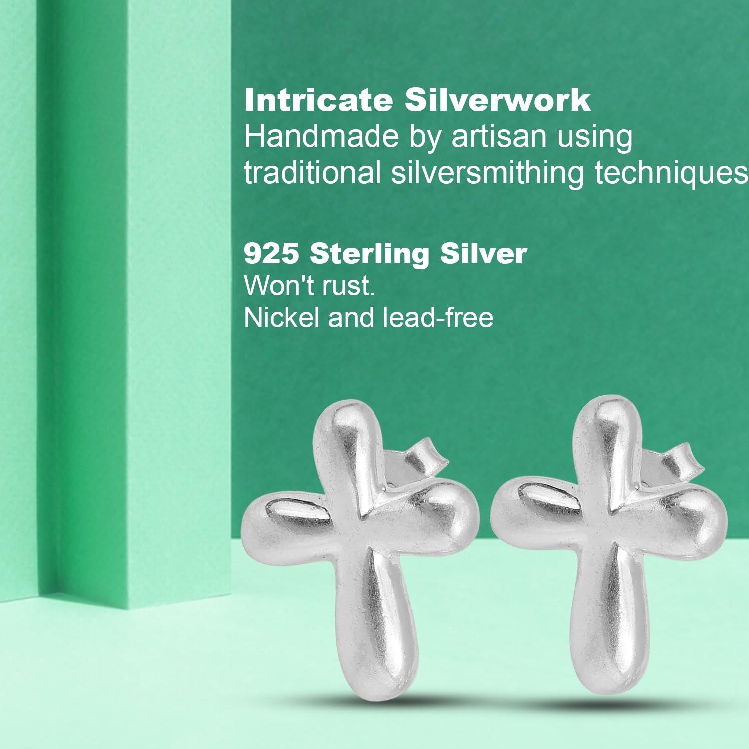 Cross Shape Silver Stud Earrings