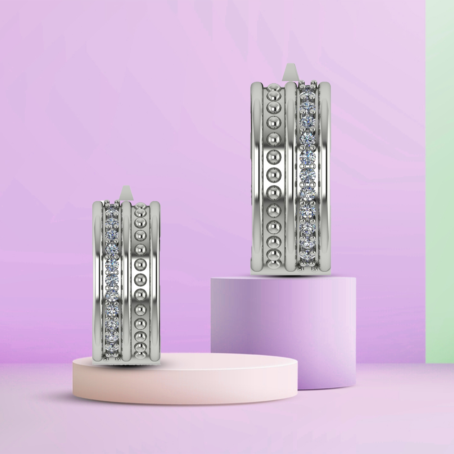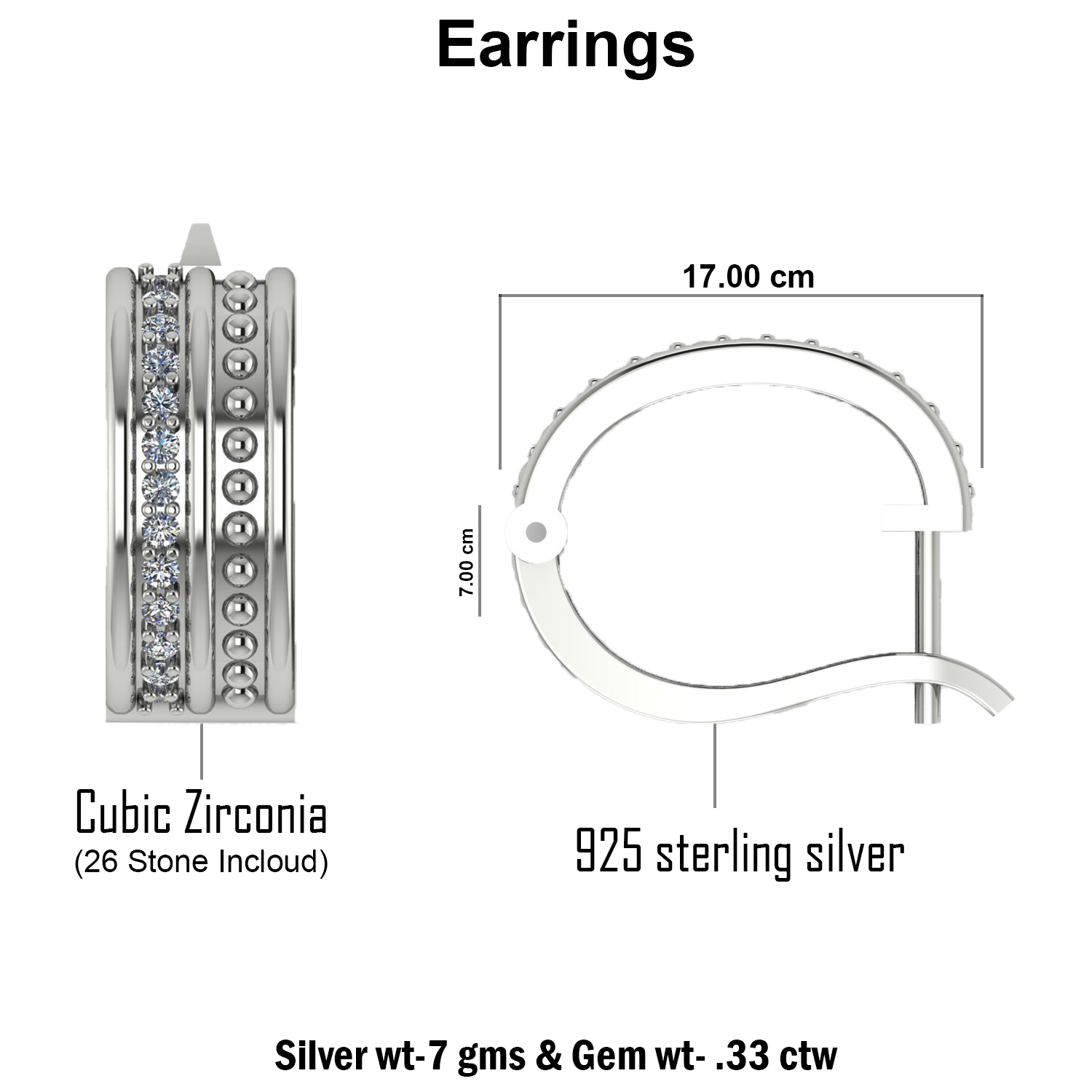Elevate your style with these trendy Cubic Zirconia ear cuffs by Meadows. Crafted in 925 sterling silver, these ear cuffs feature a multi-layered design with alternating rows of polished silver beads and sparkling round CZ stones, giving them a bold yet elegant look.