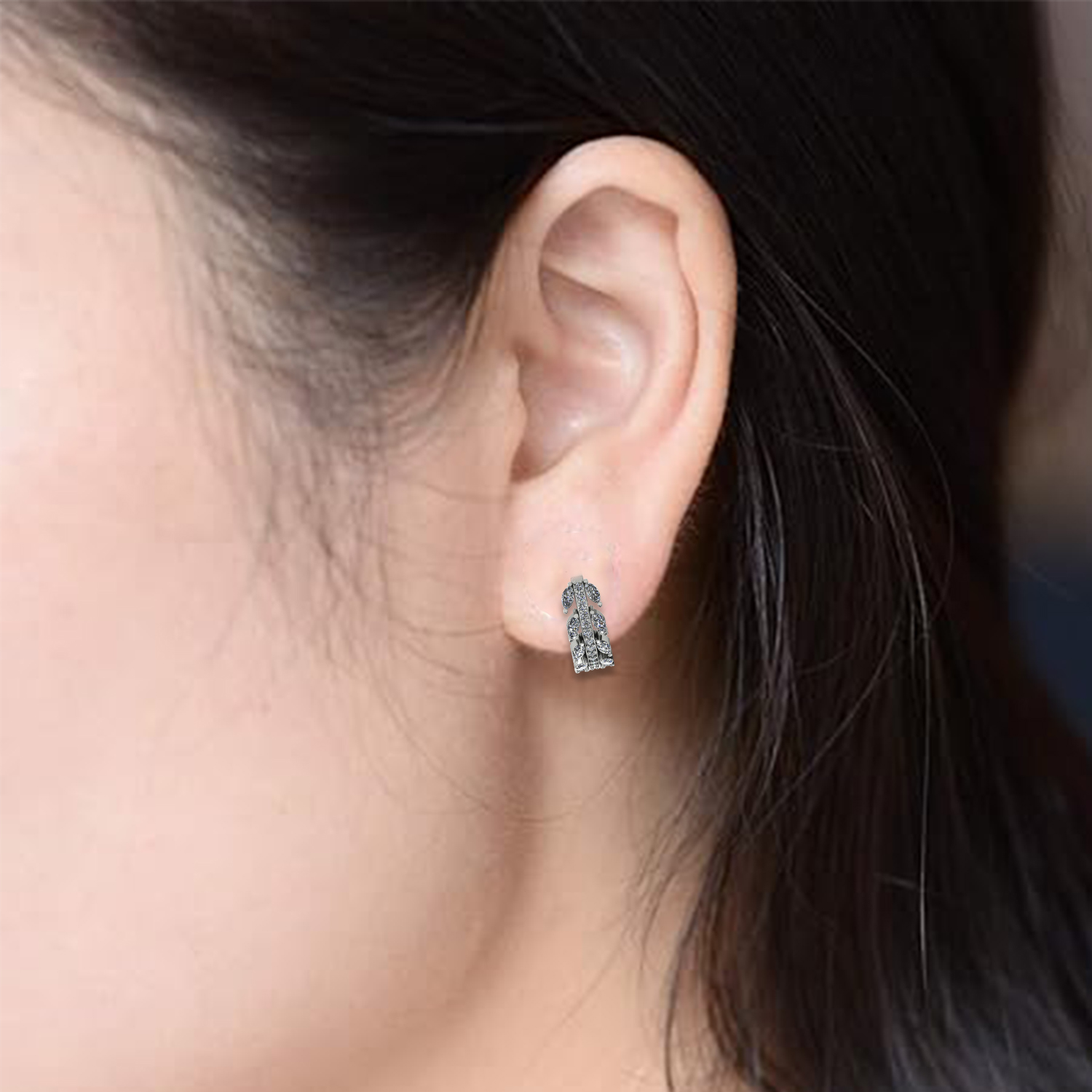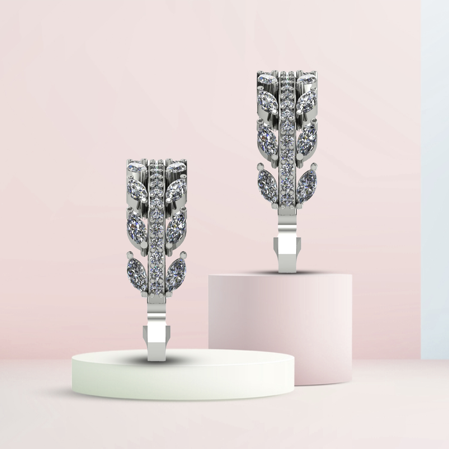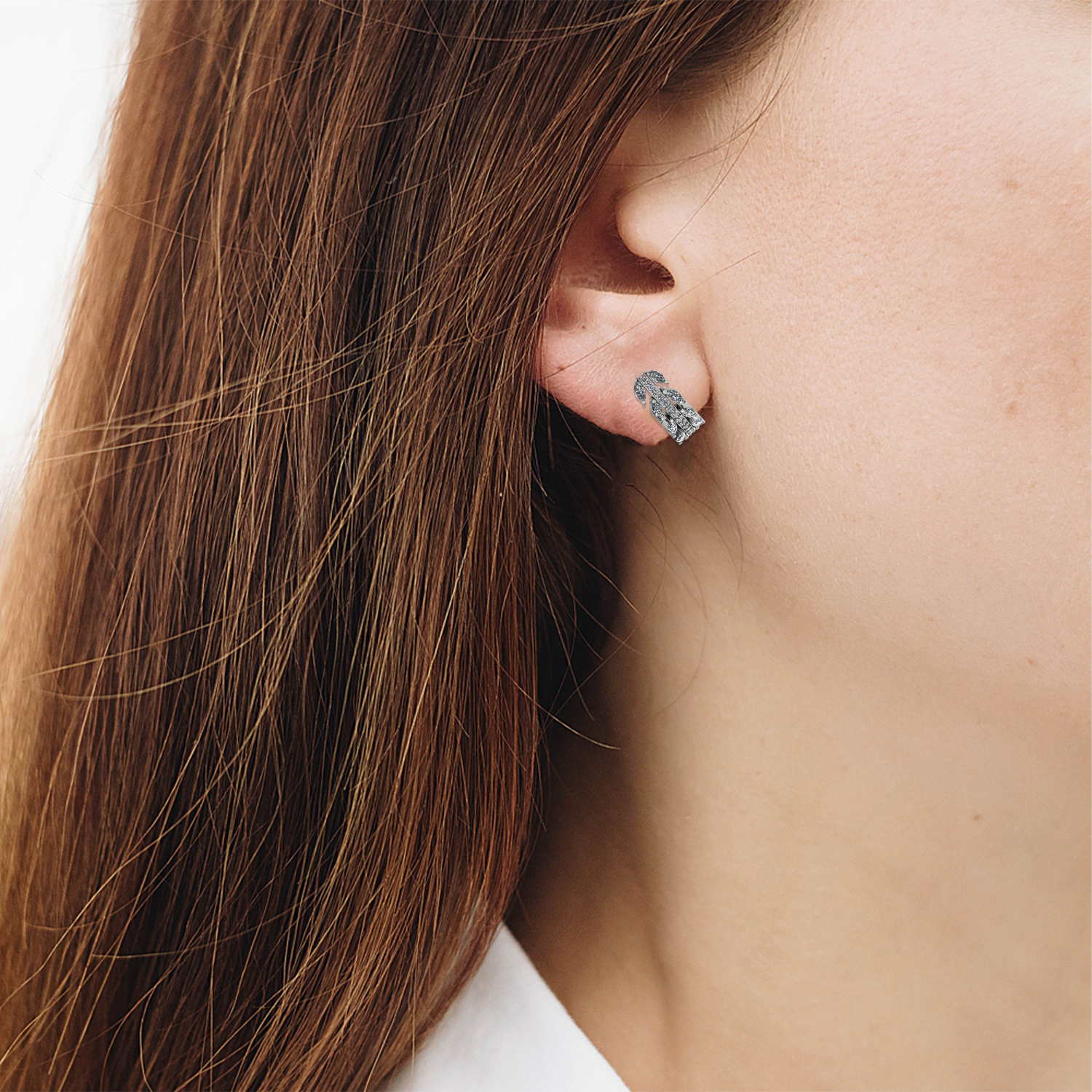 Make a statement with this exquisite leaf-inspired ear cuff by Meadows. Crafted in 925 sterling silver, it features a layered design adorned with sparkling marquise-cut and round cubic zirconia stones, creating a dazzling leaf motif. The intricate detailing and shimmering finish make it a perfect accessory for special occasions.