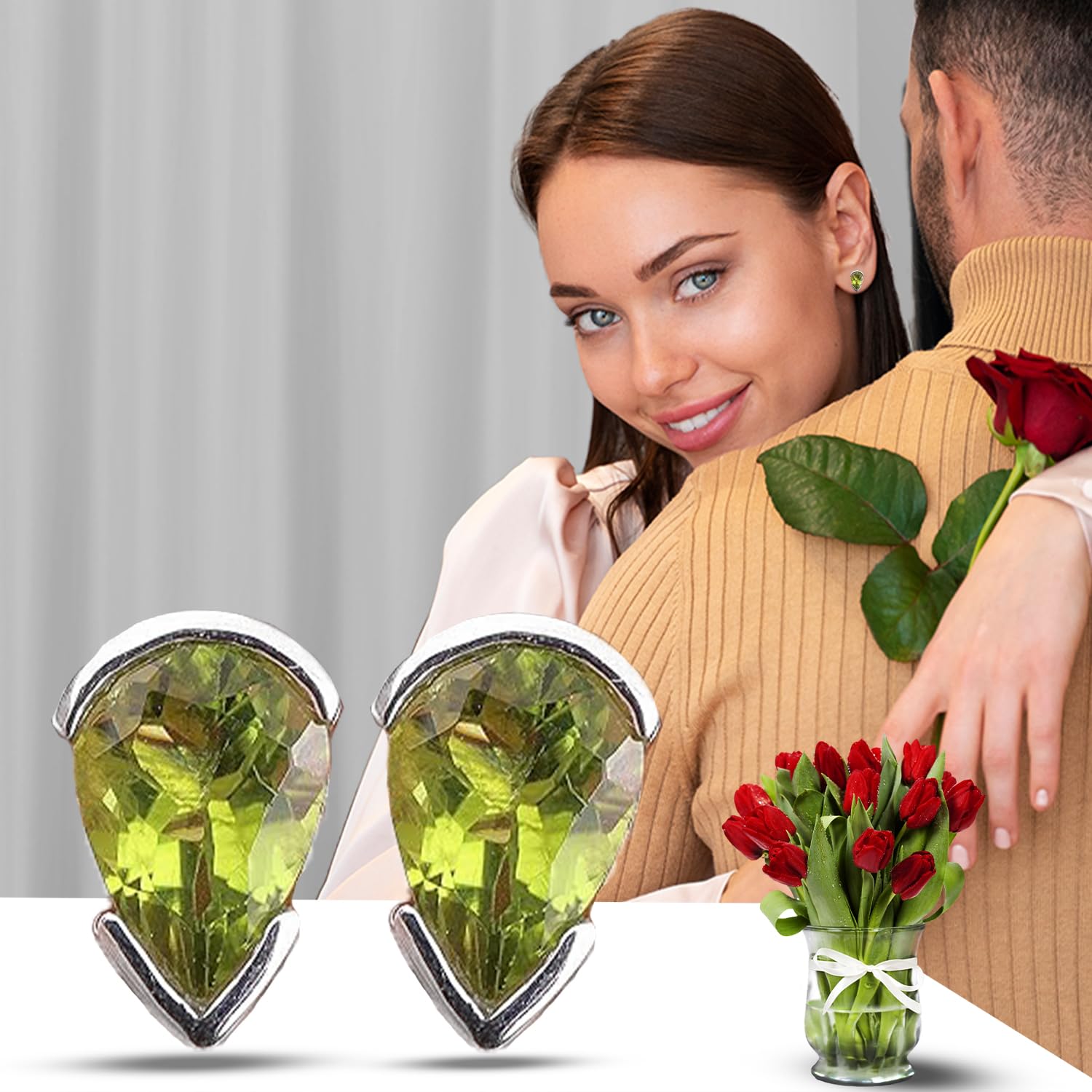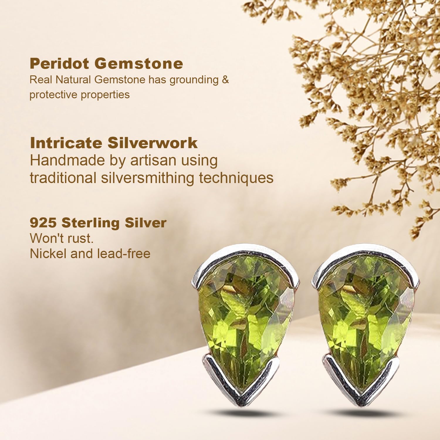 Designer Peridot Stud Earring, Minimalist 925 Sterling Silver Earring, Handmade Gemstone Earring mothers day gifts