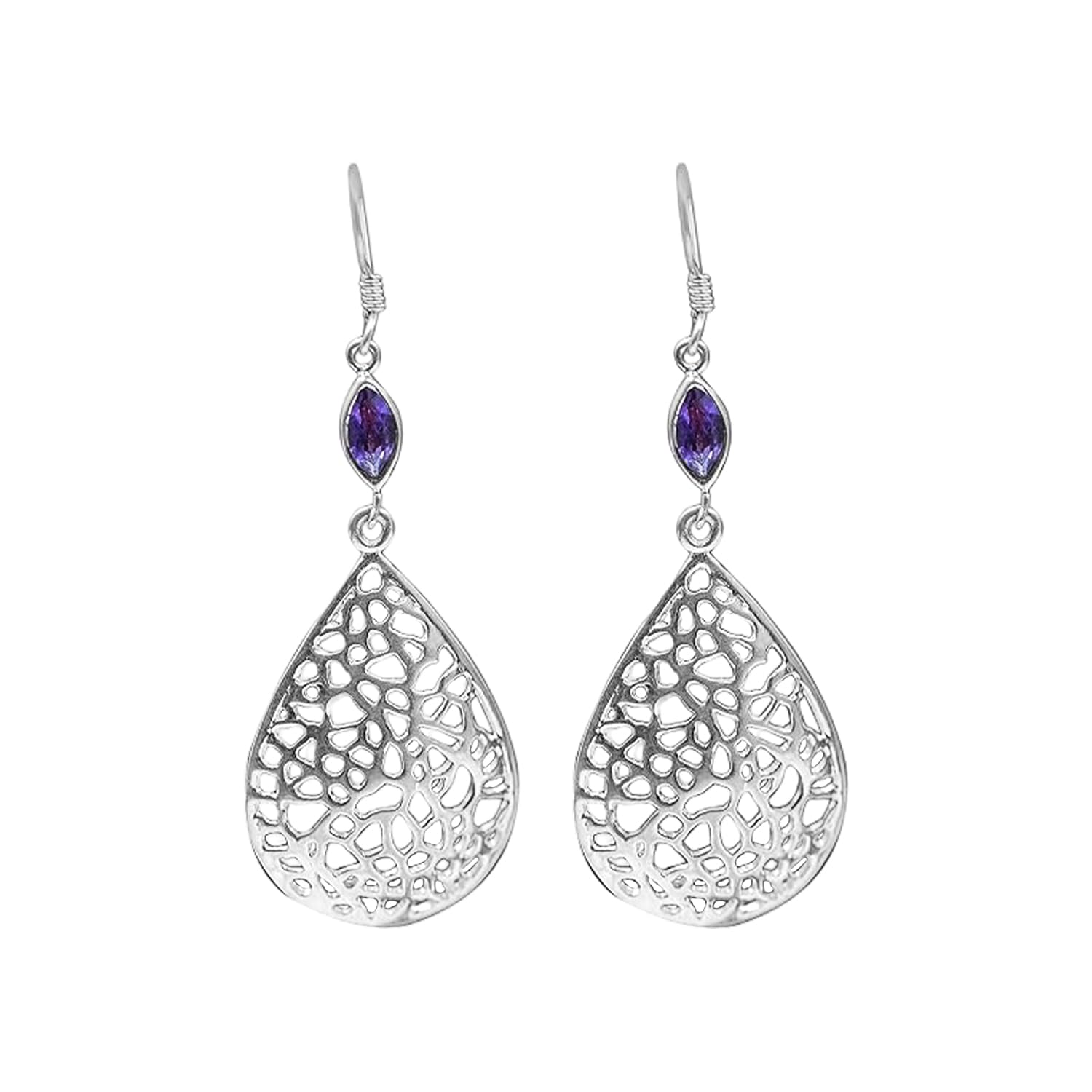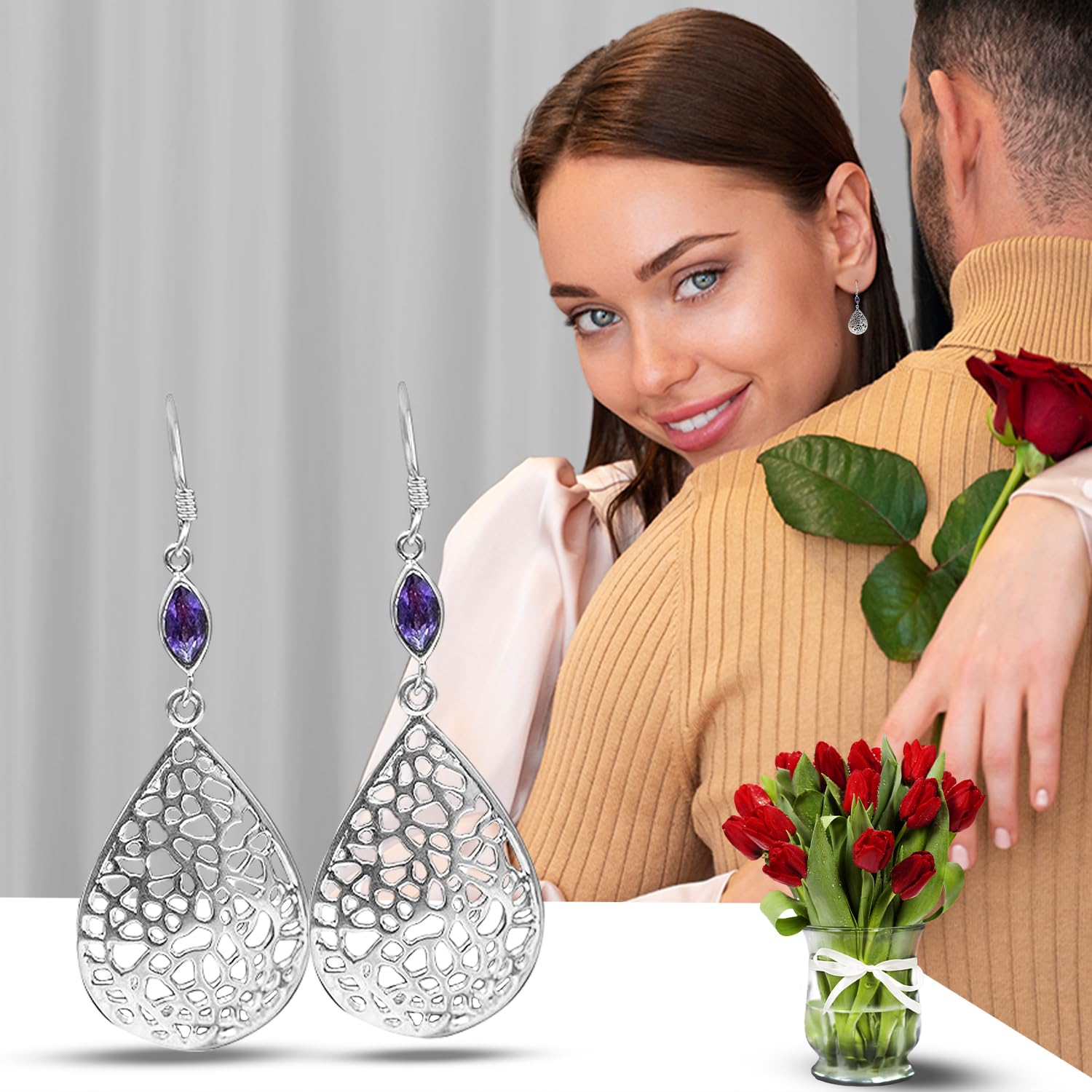 Add movement and magic to your look with these handcrafted Amethyst?Dangle Earrings, made with 925 sterling silver?. Inspired by the elegance of Indian craftsmanship, these earrings beautifully sway with every step?making them perfect for both festive occasions and everyday grace.