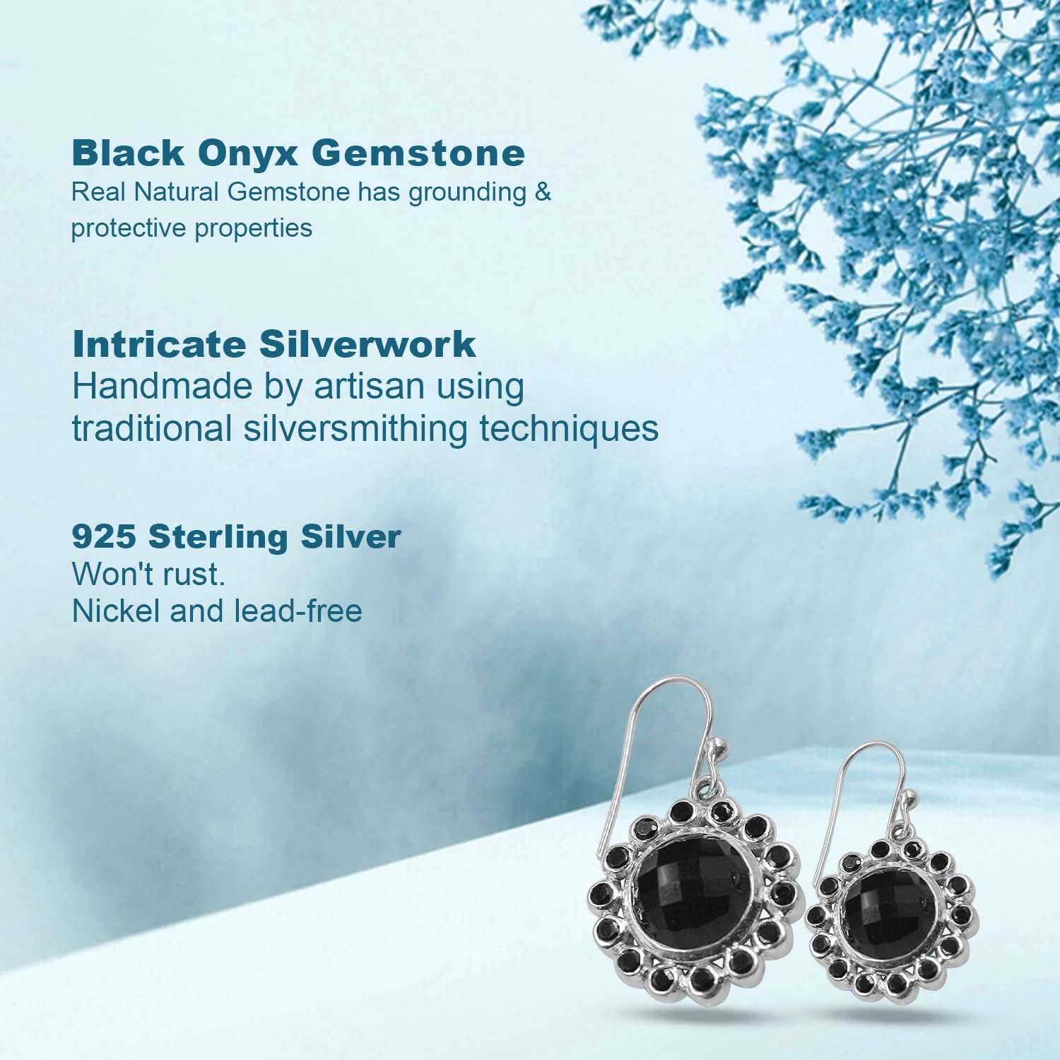 Add movement and magic to your look with these handcrafted Black Onyx??Dangle Earrings, made with 925 sterling silver?. Inspired by the elegance of Indian craftsmanship, these earrings beautifully sway with every step?making them perfect for both festive occasions and everyday grace.