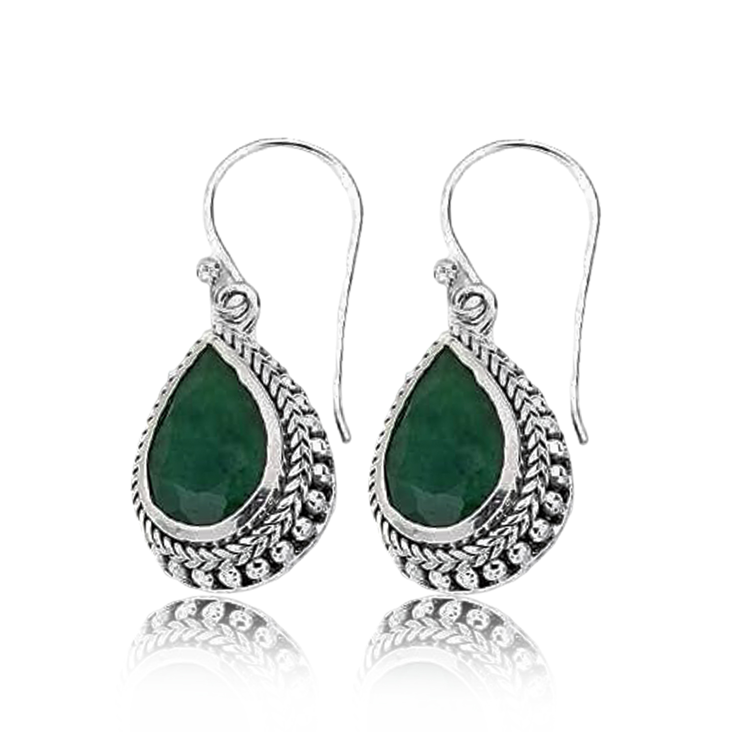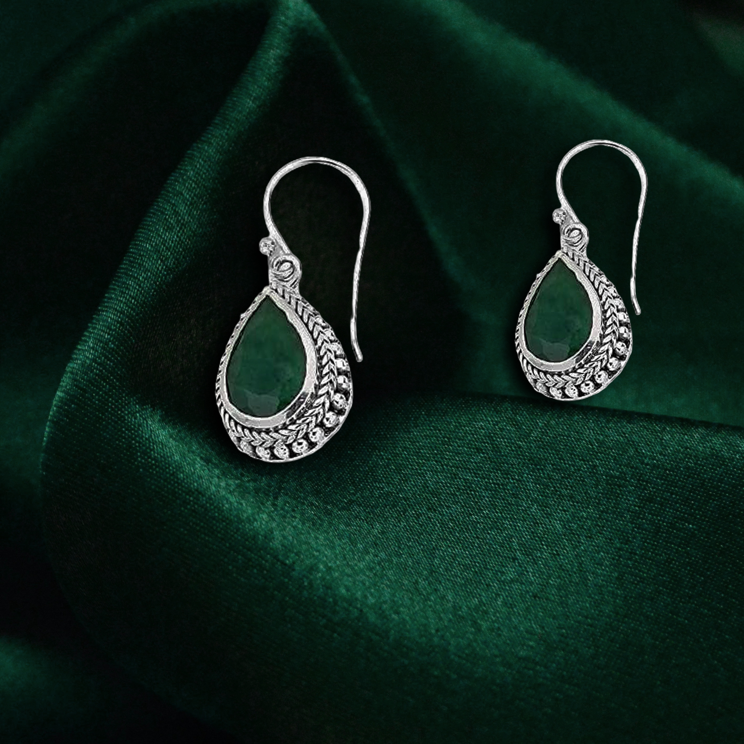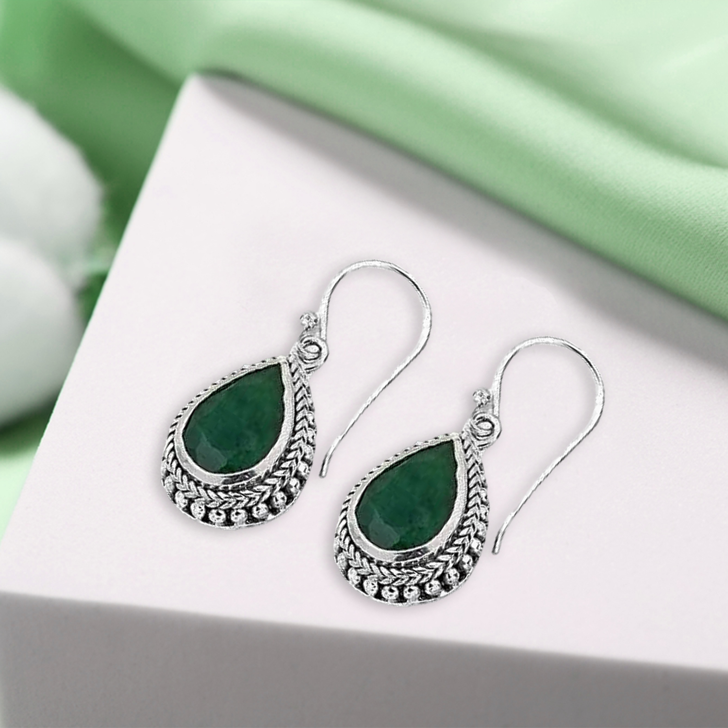 Elevate your jewelry collection with these exquisite Meadows dangle earrings, crafted from premium 925 Sterling Silver and featuring vibrant pear-shaped Emerald gemstones.