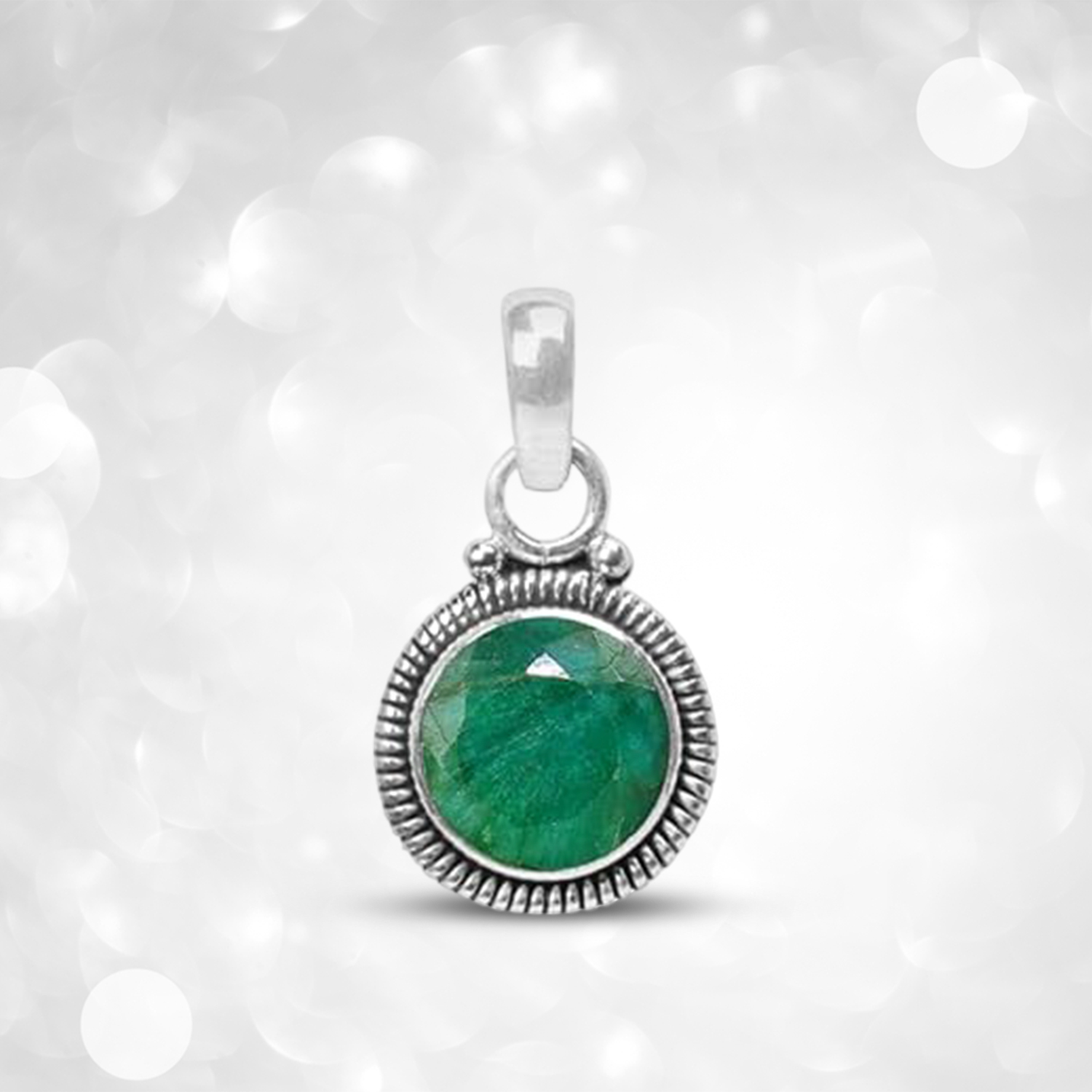 This stunning Emerald Pendant features a vibrant green gemstone set in sterling silver, symbolizing growth, renewal, and love. Its rich color and timeless beauty make it a perfect accessory to add a touch of elegance and sophistication to any occasion.