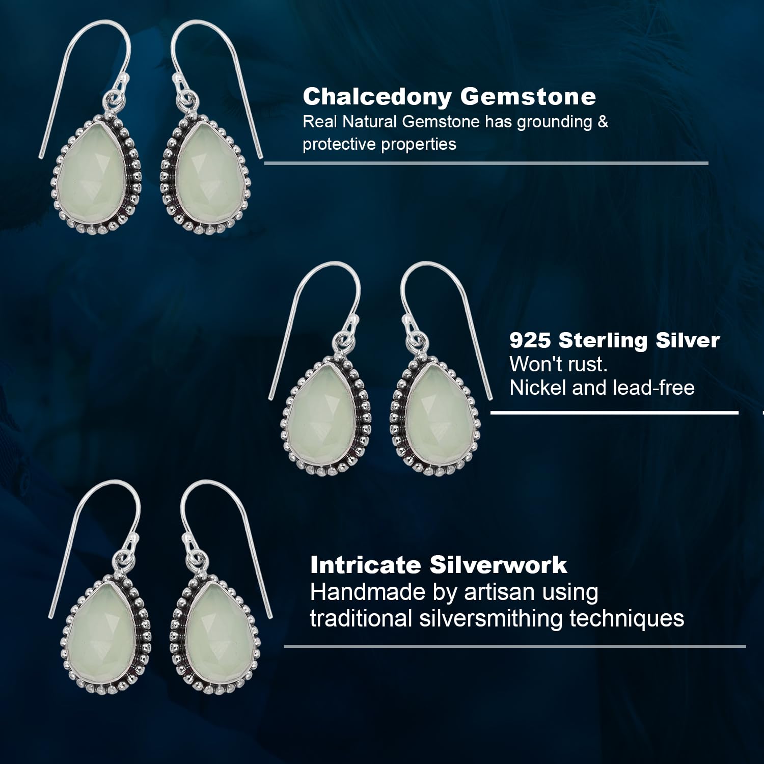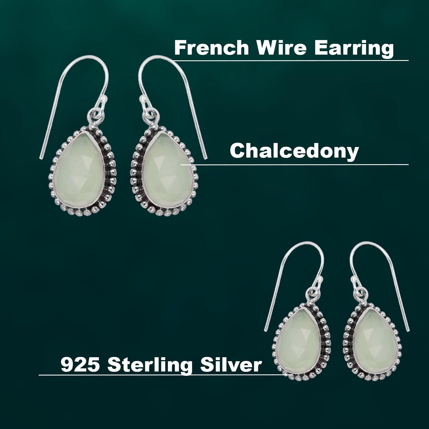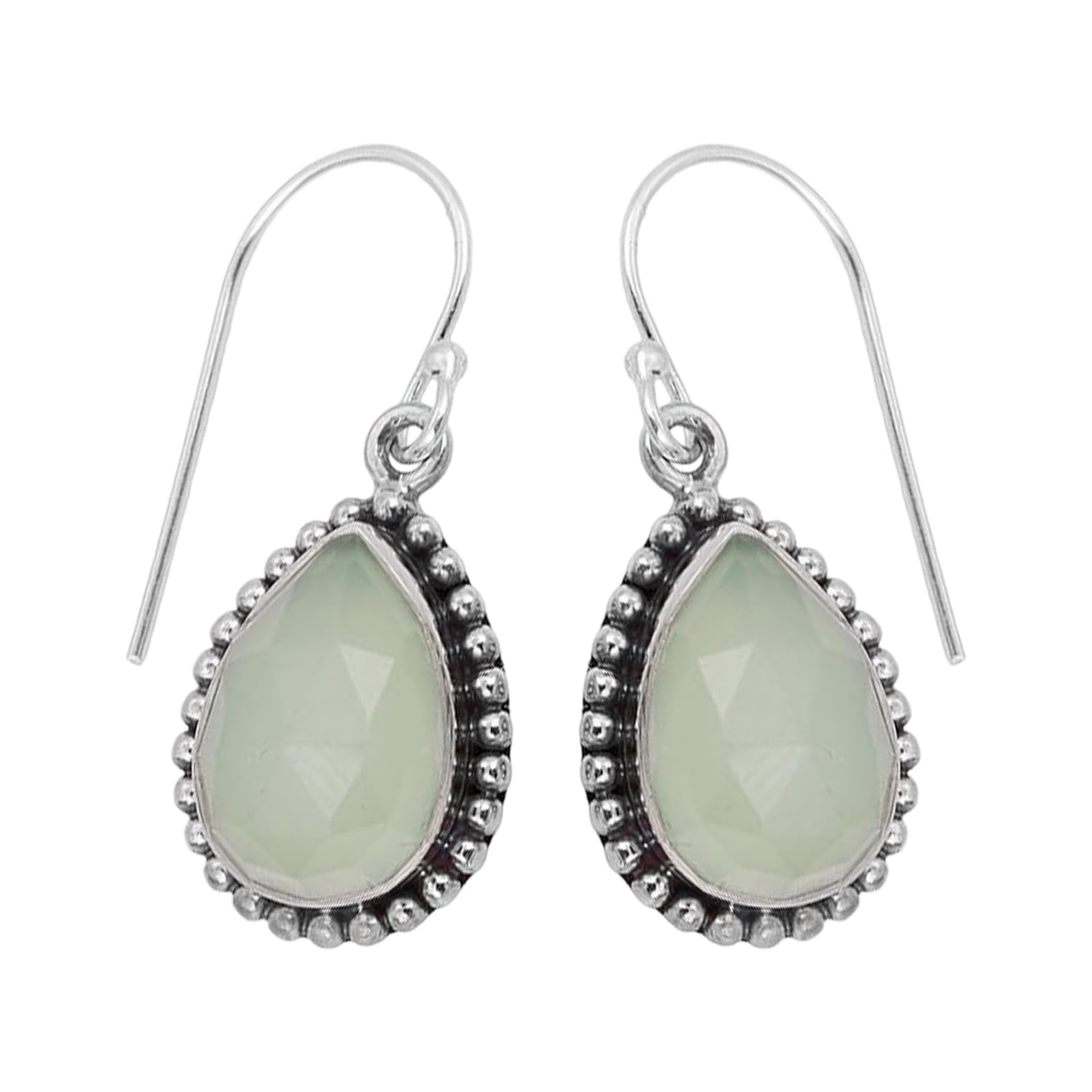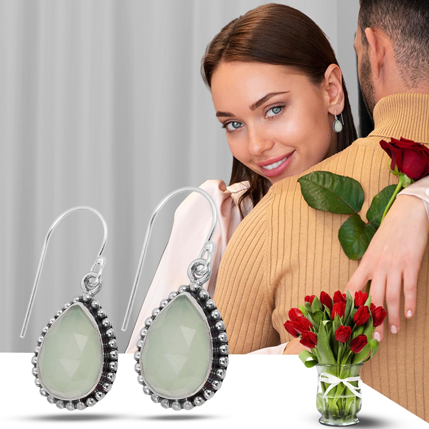 Faceted Apple Green Chalcedony Earring, Healing Crystal Earring, 925 Sterling Silver Earrings