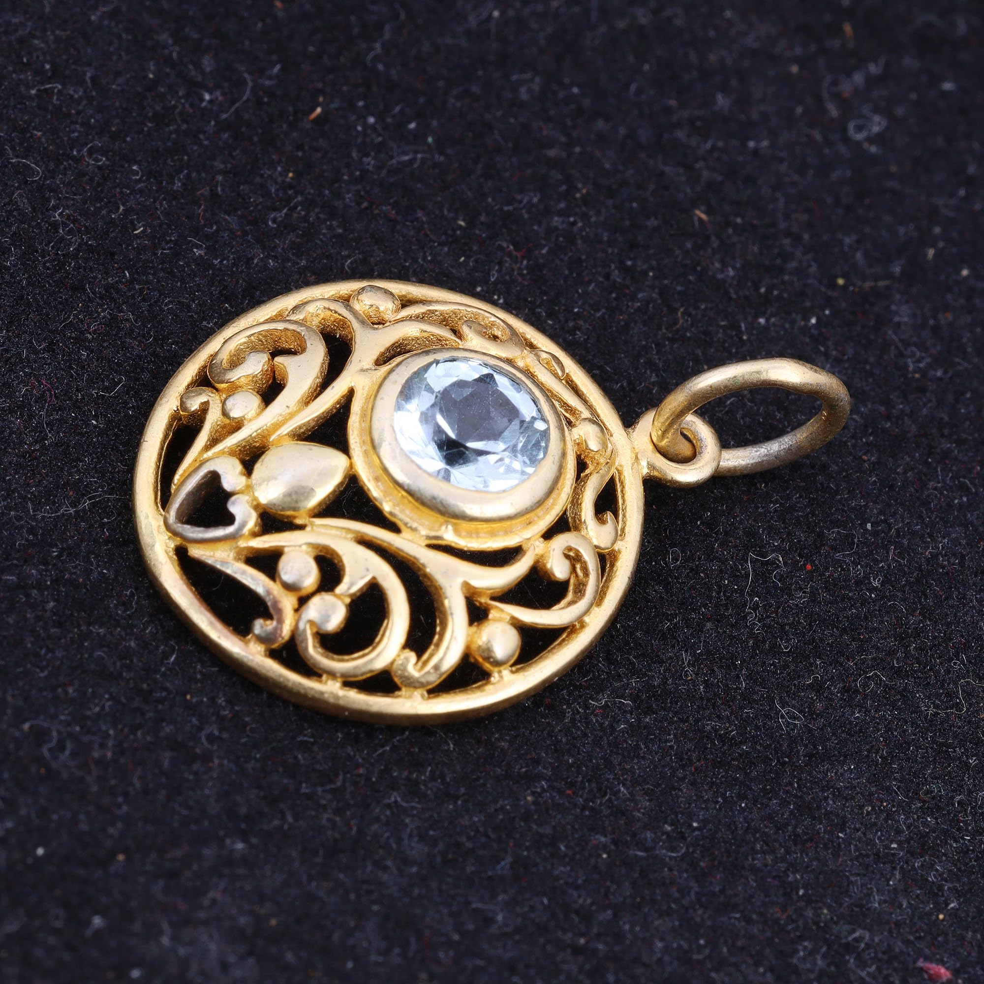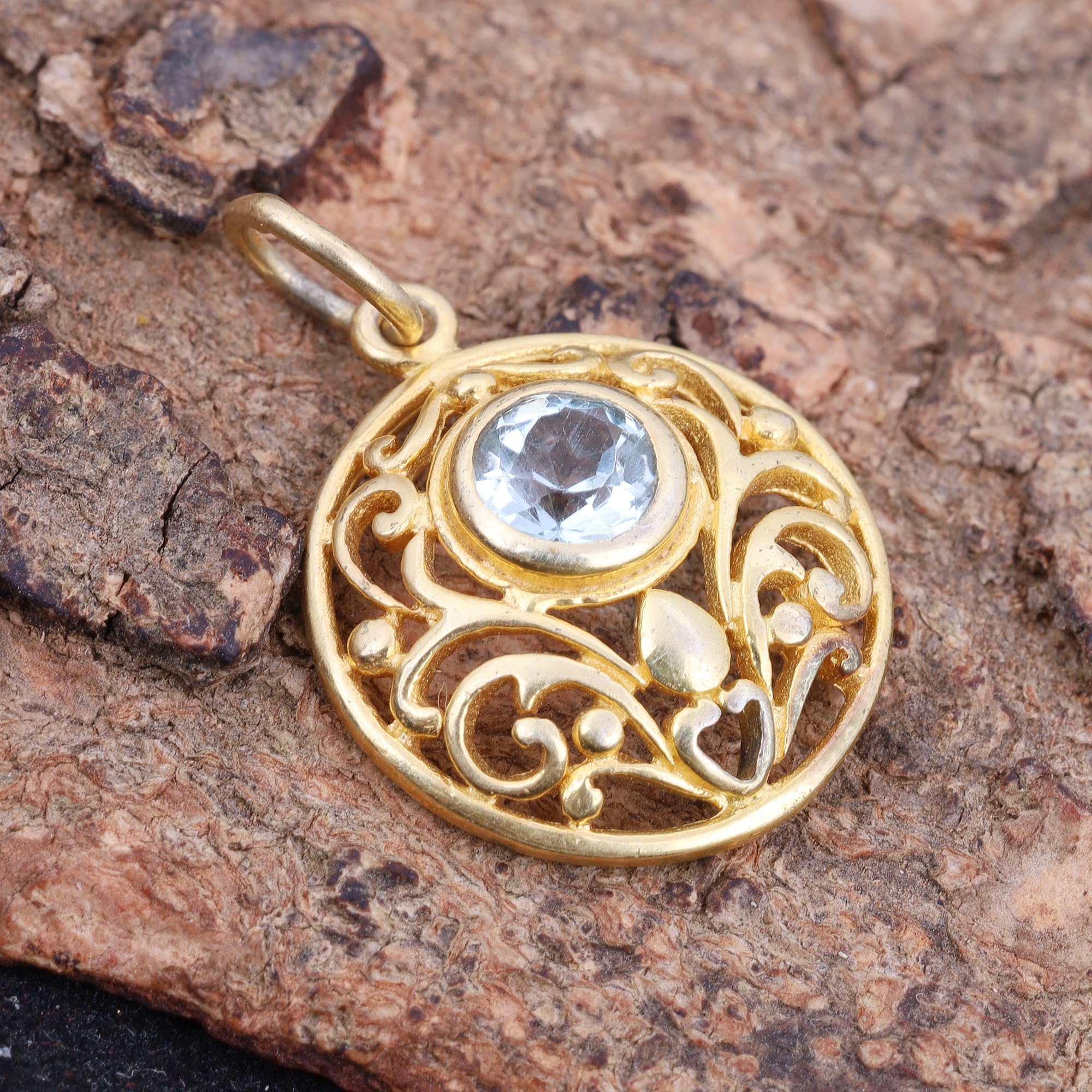 Faceted Blue Topaz Pendant For Women Yellow Gold Brass Pendant Fashion JewelryFaceted Blue Topaz Pendant For Women Yellow Gold Brass Pendant Fashion Jewelry