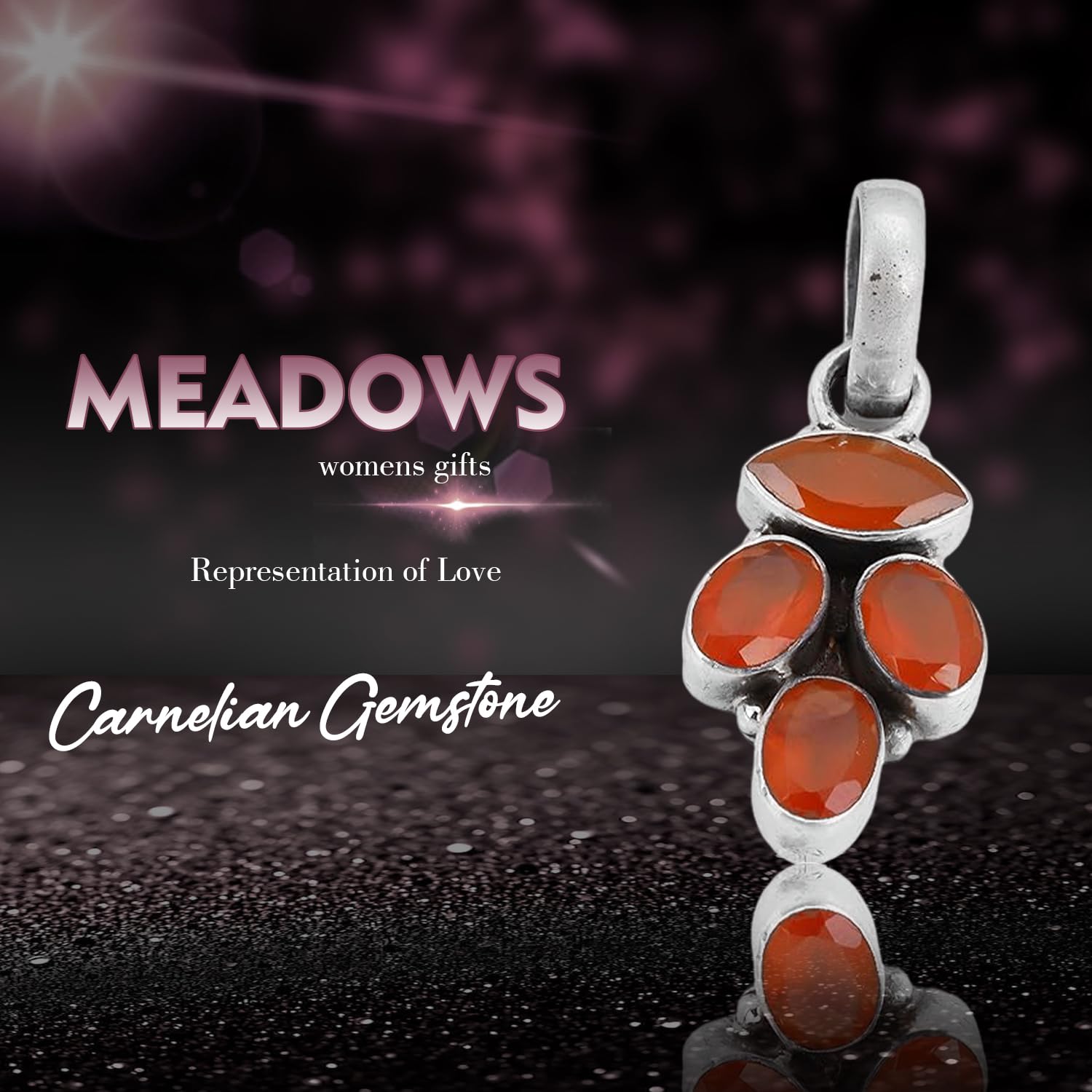 Faceted Carnelian Pendant, Minimalist Gemstone 925 Sterling Silver Pendant Jewellery